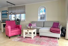 Schöne 3-Zimmer-Wohnung hinter den Dünen am Meer. „Ilse-Marie“ Whg. 1. Ca. 80 m², Nichtraucher! EG: großzügiges Wohn- und Esszimmer mit gemütlicher Sitzecke, schönem Essplatz sowie offener Küche mit Geschirrspüler, Mikrowelle, etc. Flat-Screen, Stereonanlage, W-Lan (ohne Gewähr), Gäste/WC und Diele. Sonnige Südterrasse mit Strandkorb (April-Oktober) und Gartenmöbeln UG: 2 große Schlafzimmer mit Boxspring-Doppelbetten (2x80x200 und 2x90x200) und Flat-TV, Duschbad/WC und Flur. Pkw-Stellplatz kann kostenlos dazugebucht werden. Tierhaltung ist nicht gestattet. Bettwäsche und Handtücher sind zur Anreise aufgezogen!