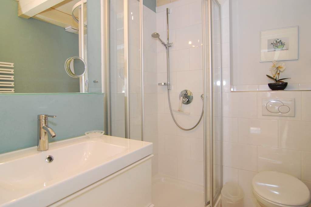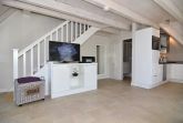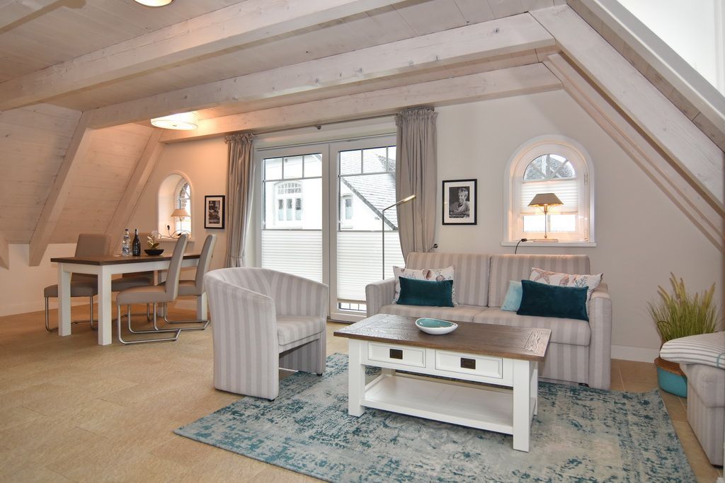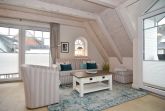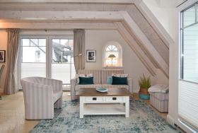 Schöne 2-Zimmer-Ferienwohnung in direkter Lage am Strandübergang. Nichtraucher-Whg.! Ca. 60m². EG: Vorflur mit Garderobe, offene Treppe ins OG. Sonniges Wohnzimmer mit Couchecke, Essplatz sowie integrierter Küche mit Geschirrspüler, Mikrowelle und Backofen, Flatscreen/Stereoanlage, W-Lan (ohne Gewähr), Duschbad/WC, Westbalkon mit Balkonmöbeln. offene Treppe aus Wohnzimmer ins DG: Schlafzimmer mit Doppelbett (2x90x200) und Flatscreen, Gäste-WC. Pkw-Stellplatz kann kostenlos gebucht werden. Bettwäsche und Handtücher sind zur Anreise aufgezogen!