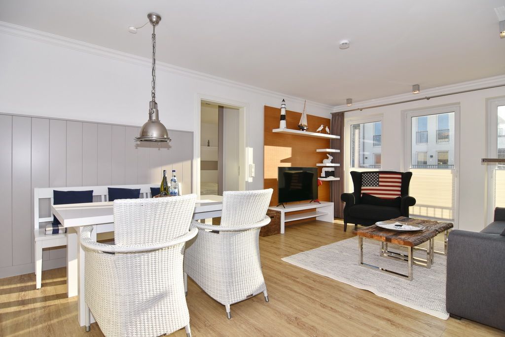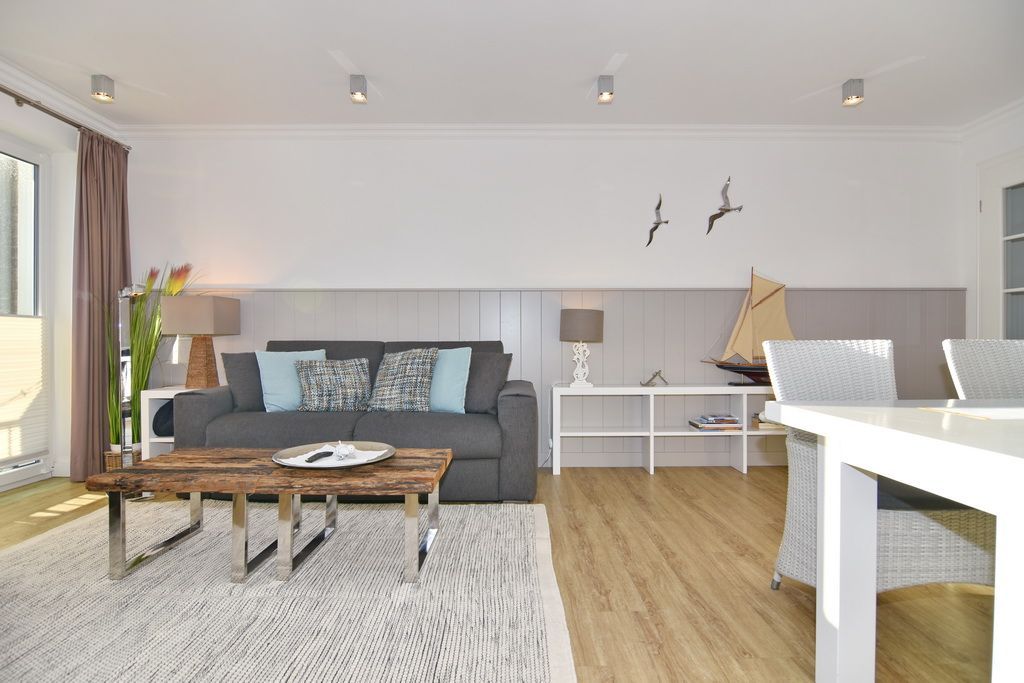 Exklusive 2-Zimmer-Ferienwohnung, 2. OG, ca. 68 m², Nichtraucher, Wohnzimmer mit Schlafcouch, Sessel, Esstisch mit Bank und 2 Stühlen, Flat-TV, Stereoanlage, W-LAN (ohne Gewähr) offene Küche m. Geschirrspüler, Mikrowelle und Backofen, Nespresso-Maschine, Schlafzimmer mit Doppelbett, Einbauschrank und Flat-TV ( mit Netflix-Funktion), Südbalkon, Duschbad / WC, Flur mit Garderobe. Fußboden mit Design Belag. Tierhaltung ist nicht gestattet. Garagen-Parkbox Nr. 24 ( nicht für jeden PKW geeignet, max. Höhe 1,50m, max. Gewicht 2t, Länge 5 m, Breite 1,9 m,vor Nutzung muss die Bedienanleitung gelesen werden. Anleitung befindet sich vor Ort !). Bettwäsche und Handtücher sind zur Anreise aufgezogen.