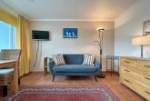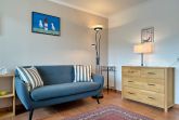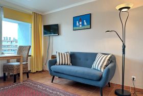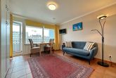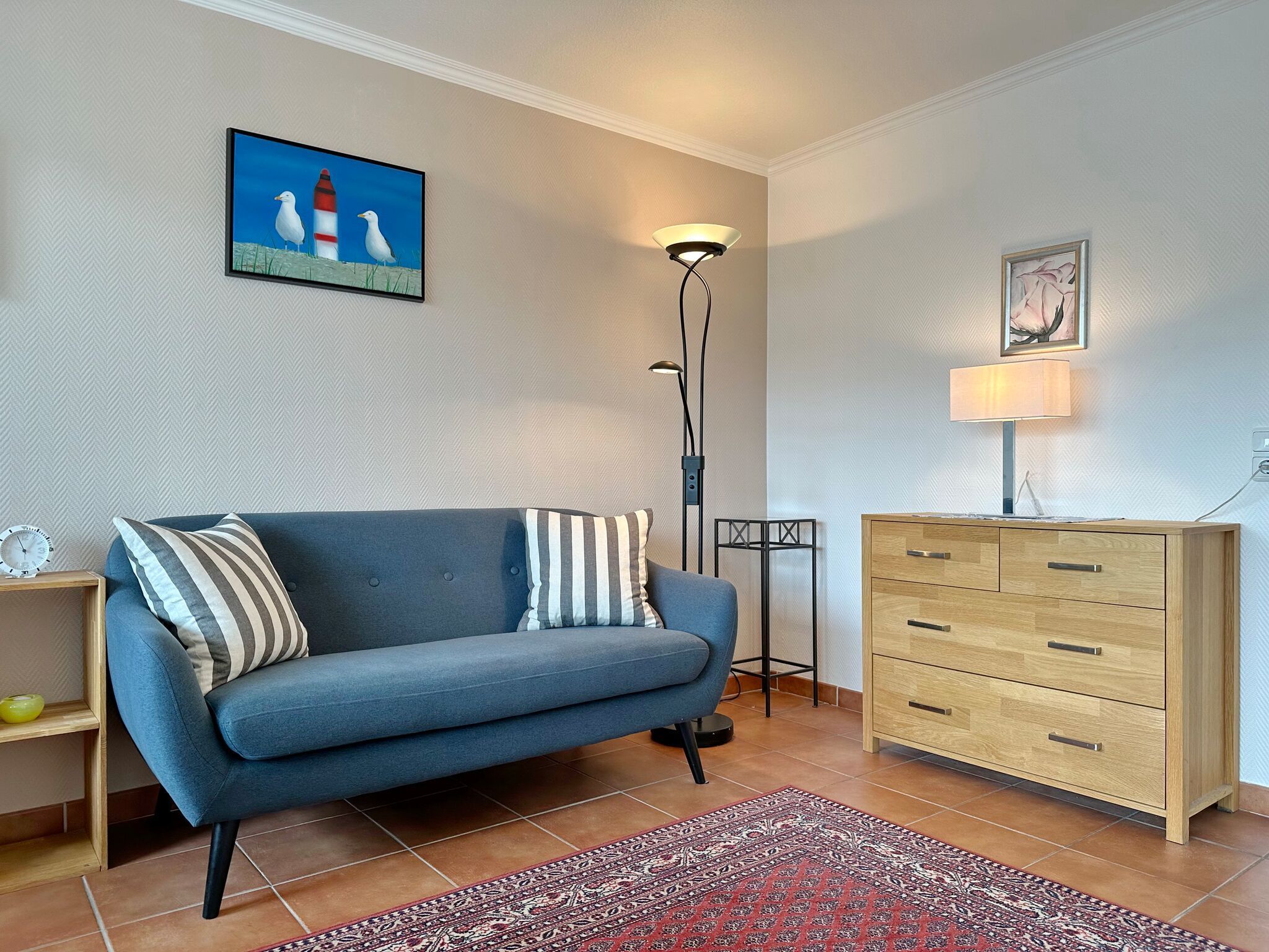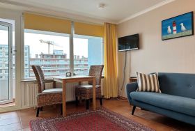 1-Zimmer-Ferienwohnung, 1. OG, ca. 30 m², Landseite im Haus Metropol. Nichtraucher-Wohnung! Wohn-/Schlafraum mit Einzelschrankbetten (2x 85x200 cm) und Couch, Essplatz am Fenster mit 2 Rattanstühlen, Radio, Kabel-TV W-Lan (ohne Gewähr), Ostbalkon, Küchenzeile im Flur mit Geschirrspüler, Duschbad/WC. Appartement ist komplett gefliest. Tierhaltung nicht gestattet. Bettwäsche und Handtücher sind zur Anreise aufgezogen. Ein PKW-Stellplatz kann kostenpflichtig zugebucht werden.