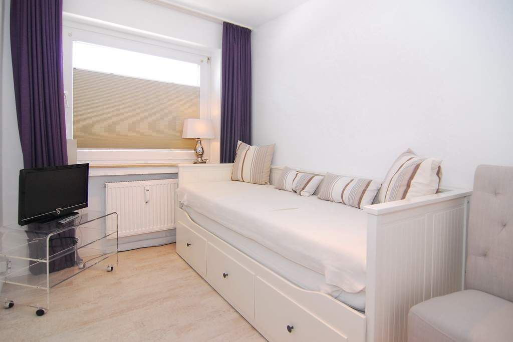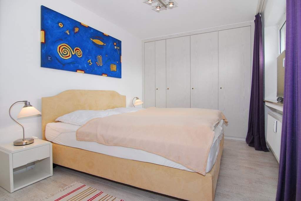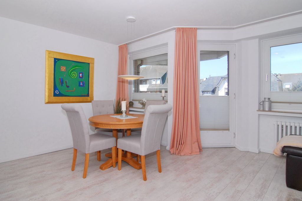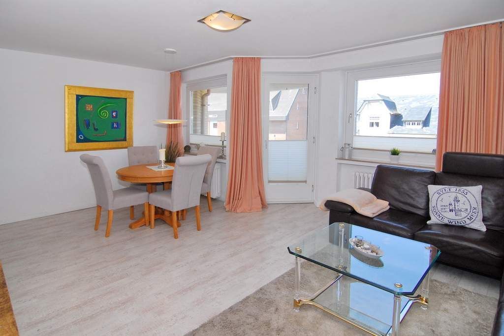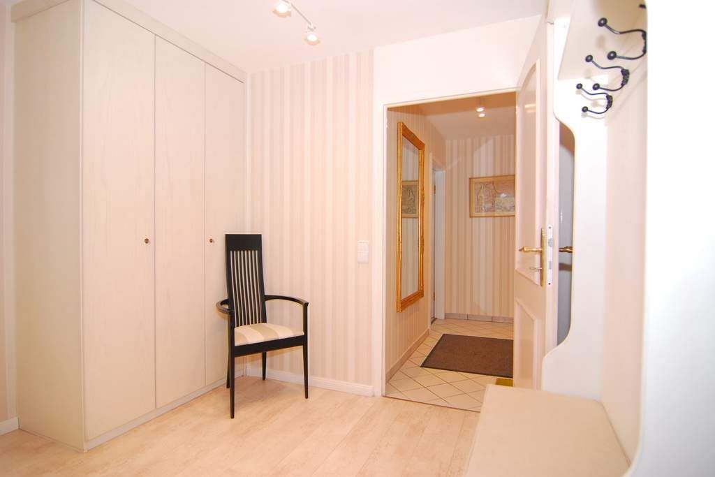 3-Zimmer-Ferienwohnung, ca. 65m², 1. OG, im Haus Undine. Nichtraucher-Whg. ! Wohnzimmer mit Eckcouch, Essplatz, Flat-TV, Stereoanlage mit Ipod-Station, Playstation 2, W-Lan, Westbalkon, separate Küche mit Geschirrspüler, Backofen und Nespresso-Maschine. 1 Schlafzimmer mit Doppelbett und Flat-TV (Hotelsafe vorhanden), 1 Schlafzimmer mit Doppelbett (160x200) und Flat-TV, Duschbad / WC mit Föhn. Tierhaltung ist nicht gestattet. Bettwäsche und Handtücher sind zur Anreise aufgezogen. Garagenstellplatz Nr. 39 inklusive (Garagenöffner bei Anreise im Büro Riel).