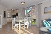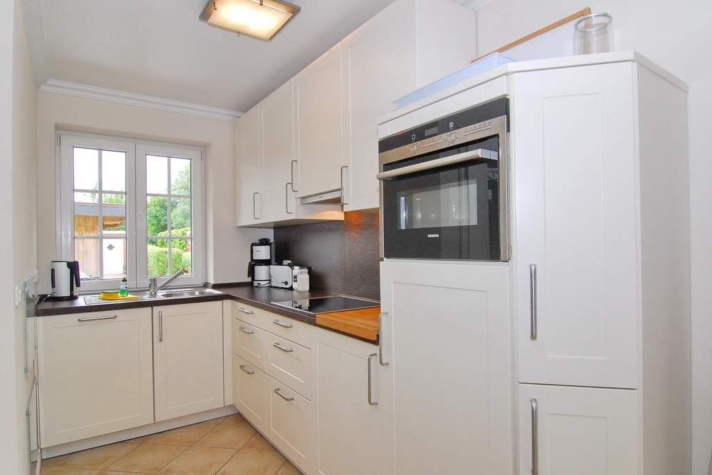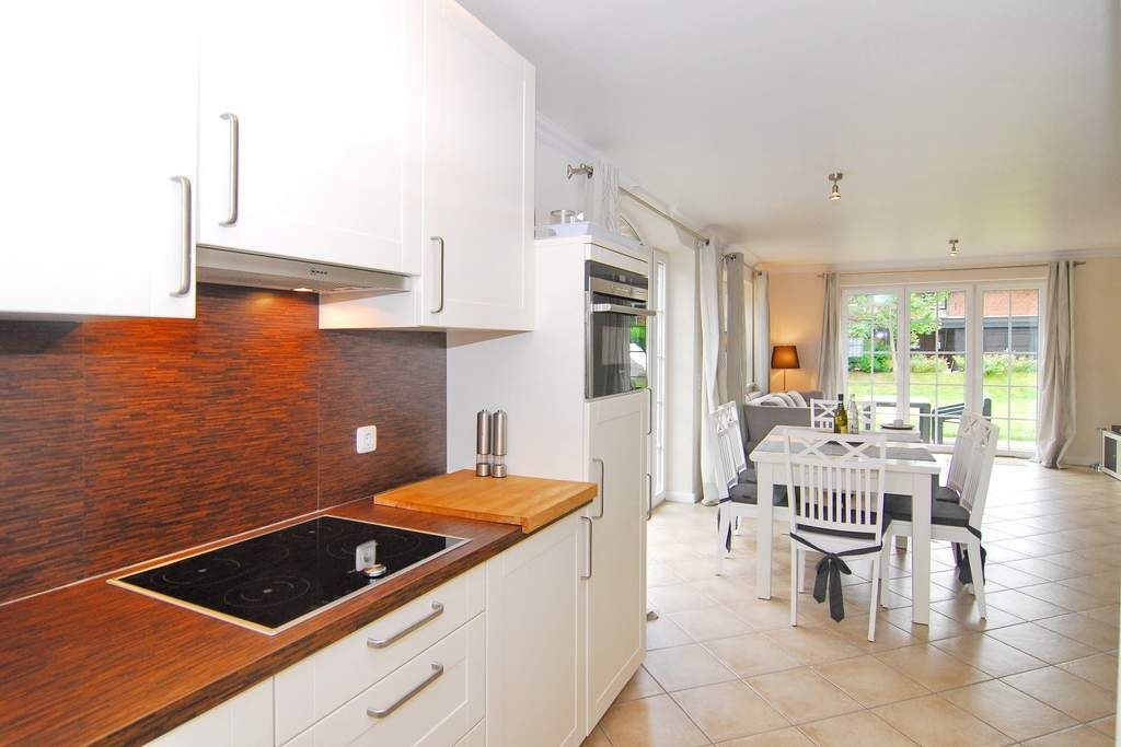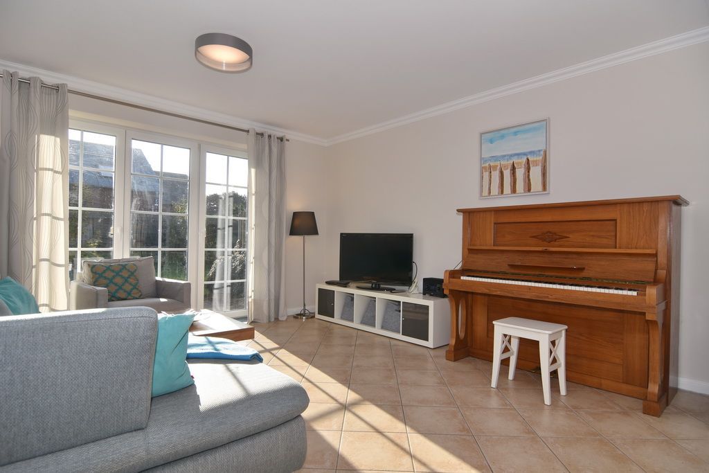 Modernes Endhausteil in Dorflage mit Südterrasse und schönem Garten, Nichtraucher. Ca. 95 m². EG: Wohn- und Esszimmer mit offener Küche im Landhausstil, Geschirrspüler, Mikrowelle und Backofen sind vorhanden, Couchecke und Essplatz, Flat-TV, Internet, Duschbad/WC. OG: 1 Schlafzimmer mit Doppelbett und TV, 1 Schlafzimmer mit 2 Einzelbetten, Vollbad/WC. PKW-Stellplatz am Haus. Tierhaltung ist nicht gestattet. Bettwäsche und Handtücher sind zur Anreise aufgezogen. 1 Babybett und ein Bettgitter sind vorhanden.