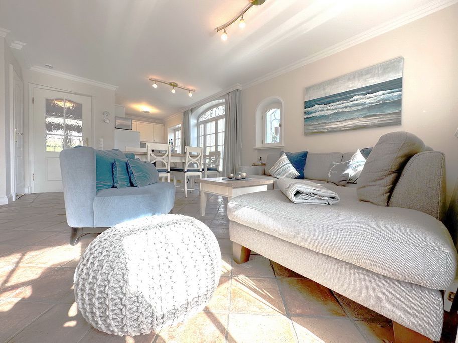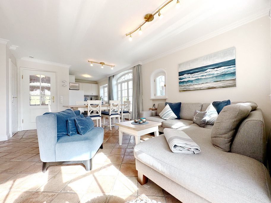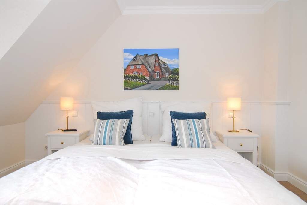 Exklusive Doppelhaushälfte am Ortsrand von Tinnum mit Süd- und Ostterrasse unter Reet. Nichtraucher. EG: Sonniges Wohnzimmer mit Essplatz, Kamin und Couchecke, TV, DVD, Stereoanlage, CD, MP3, Internet (ohne Gewähr), Telefon (Festnetzflatrate), Terrasse mit Gartenmöbeln und Strandkorb, Gäste- WC, offene Küche mit Geschirrspüler, Mikrowelle und Backofen, Fußbodenheizung im EG. OG: 2 Schlafzimmer mit 2 Doppelbetten und TV, je 1 Voll- und Duschbad/WC mit Fußbodenheizung. Waschmaschine und Trockner sind im Haus. PKW-Stellplatz am Haus. Tierhaltung und grillen sind verboten. Bettwäsche und Handtücher sind zur Anreise aufgezogen.