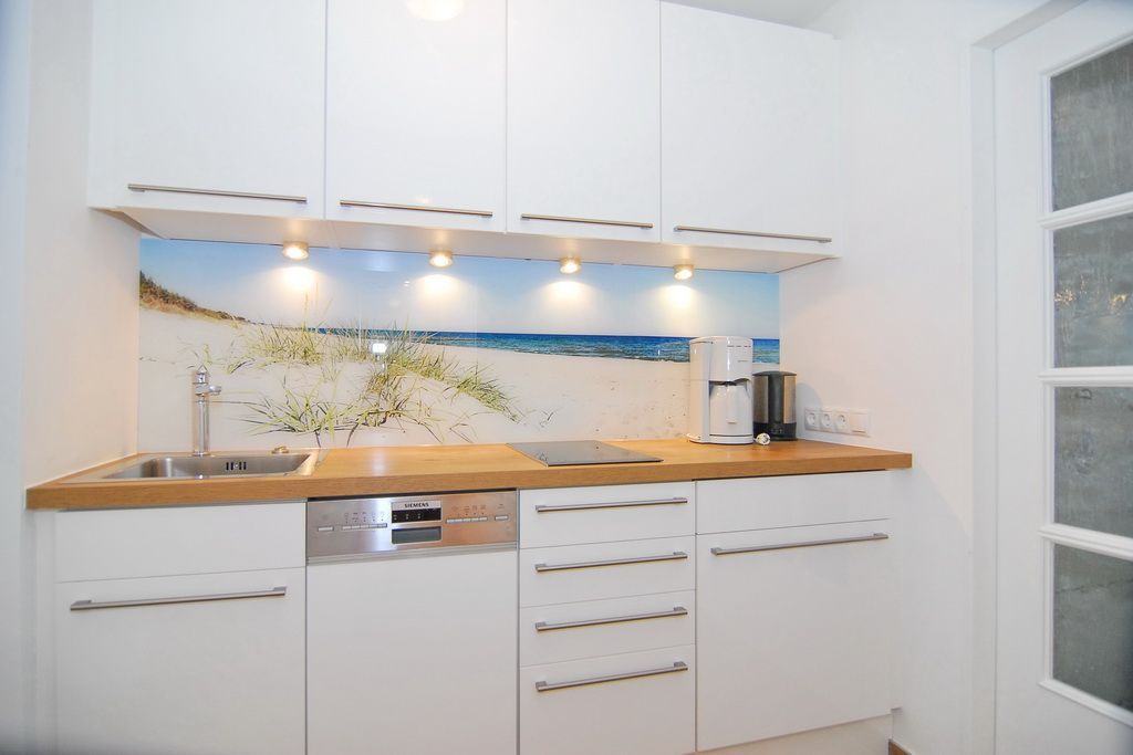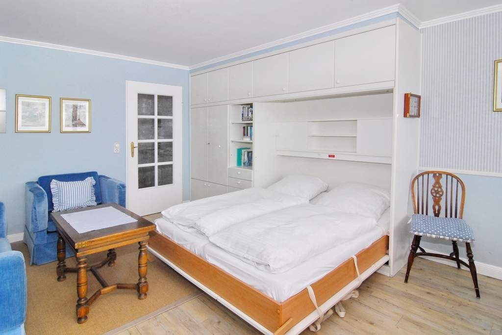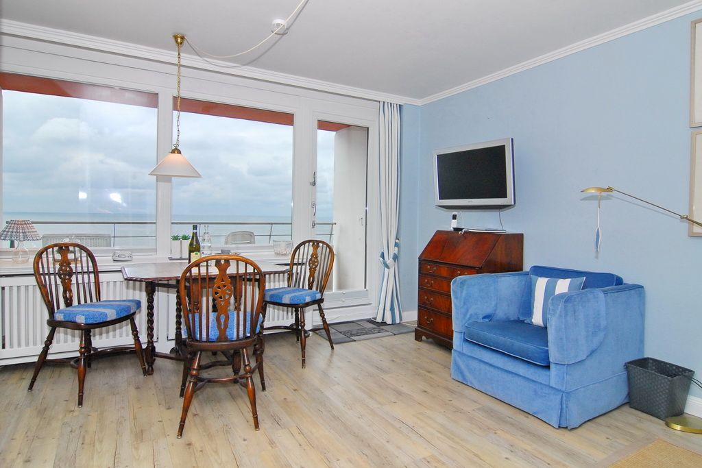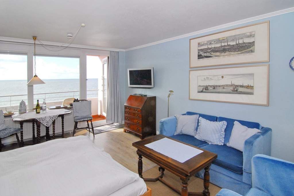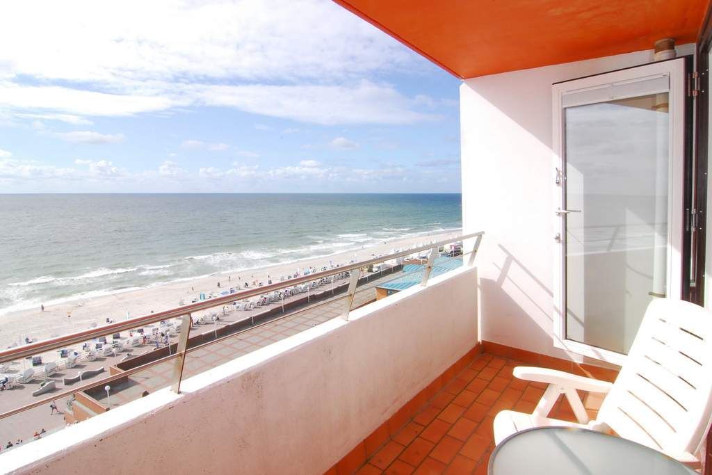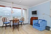 1-Zimmer-Ferienwohnung ca. 34 qm; 6. OG im Haus Metropol zur Seeseite. Wohn-/Schlafraum mit Doppelschrankbett (2 Matratzen), Couch u. Sessel, Eßplatz am Fenster, Flat-TV, Internetradio, W-Lan (ohne Gewähr), Westbalkon mit herrlichem Meeresblick, Küchenzeile im Flurbereich mit 2-Platten-Ceranherd und Geschirrspüler. Duschbad/WC. - Tierhaltung nicht gestattet - Nichtraucher-Whg.! Das App. ist mit Laminat ausgelegt. Bettwäsche und Handtücher sind zur Anreise aufgezogen. Ein PKW-Stellplatz kann kostenpflichtig zugebucht werden.
