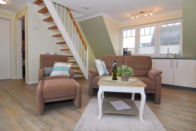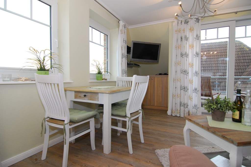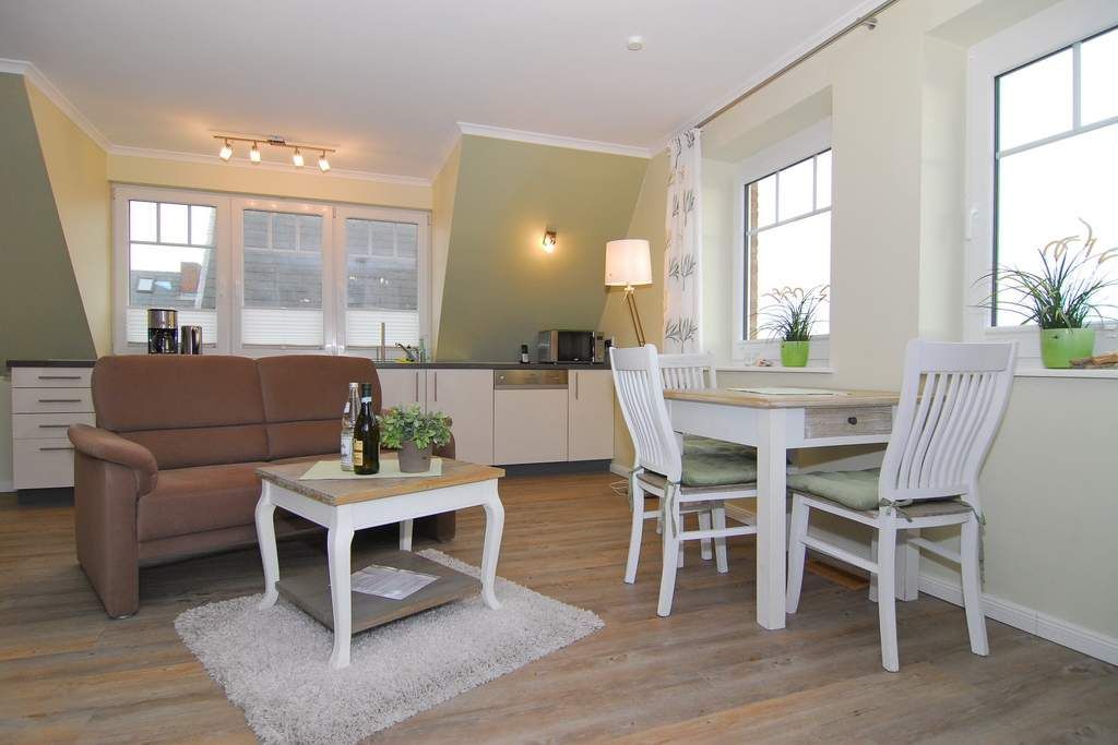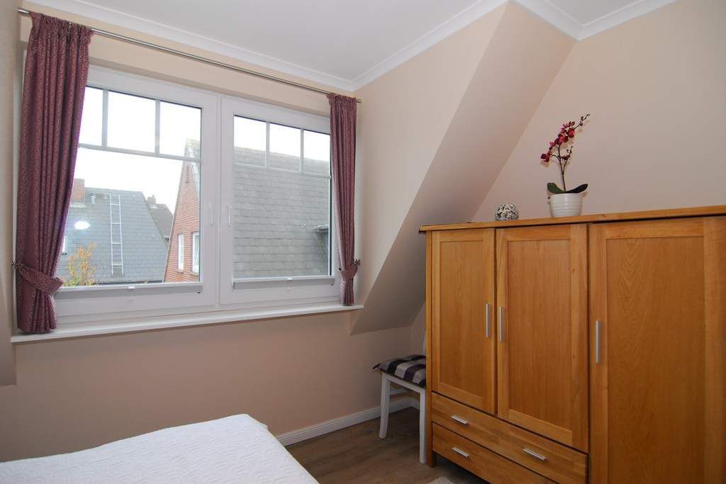 2-Zimmer-Ferienwohnung mit freiem Blick auf die Tinnum-Burg. OG, ca. 45m². Nichtraucher, Tierhaltung auf Anmeldung, großes Wohnzimmer mit Couchecke und Essplatz am Fenster mit offener Pantryküche mit Geschirrspüler und Mikrowelle, Duschbad/WC, Schlafzimmer mit Doppelbett. Westbalkon mit Balkonmöbeln. Flat-Screen mit Netflix-Account, Internet, Alexa. Wasch-/Trocknerkombination. Stellplatz vorm Haus / bzw. an der Straße. Bettwäsche und Handtücher auf Bestellung. Tierhatlung ist gestattet, muss jedoch angemeldet werden. Ab Juni 2023 befindet sich neben dem Haus, östlich gelegen, eine Baustelle, Baulärm kann vorhanden sein. Ebenfalls finden ab Ende April 2025 bis Mitte Dezember 2025 Straßenbauarbeiten statt, Zufahrt bleibt für Anlieger frei.