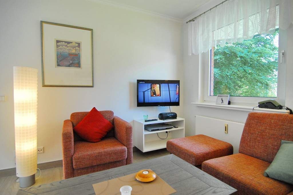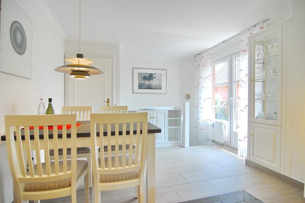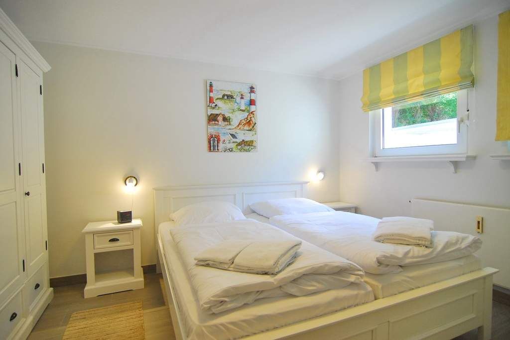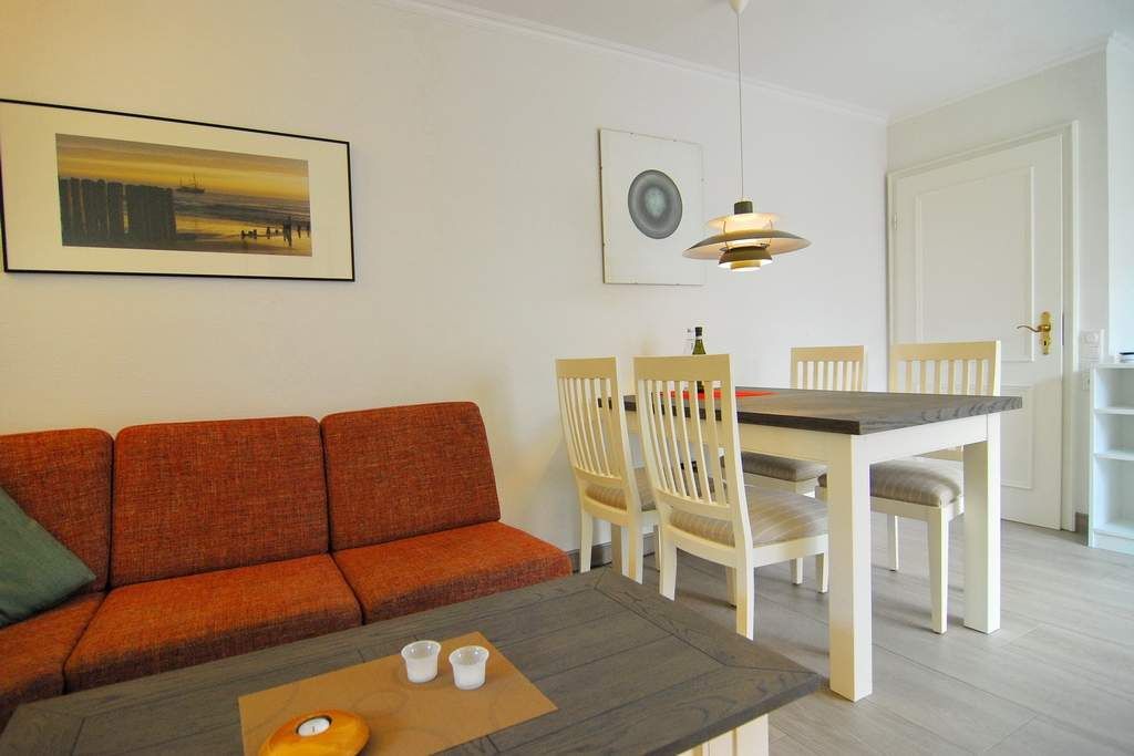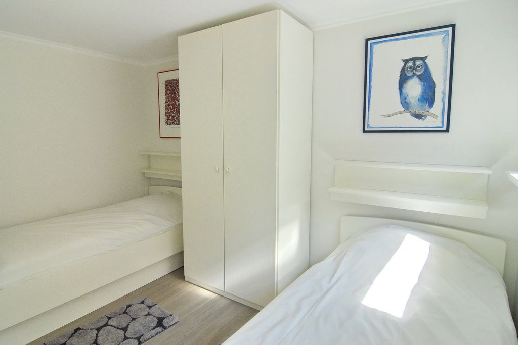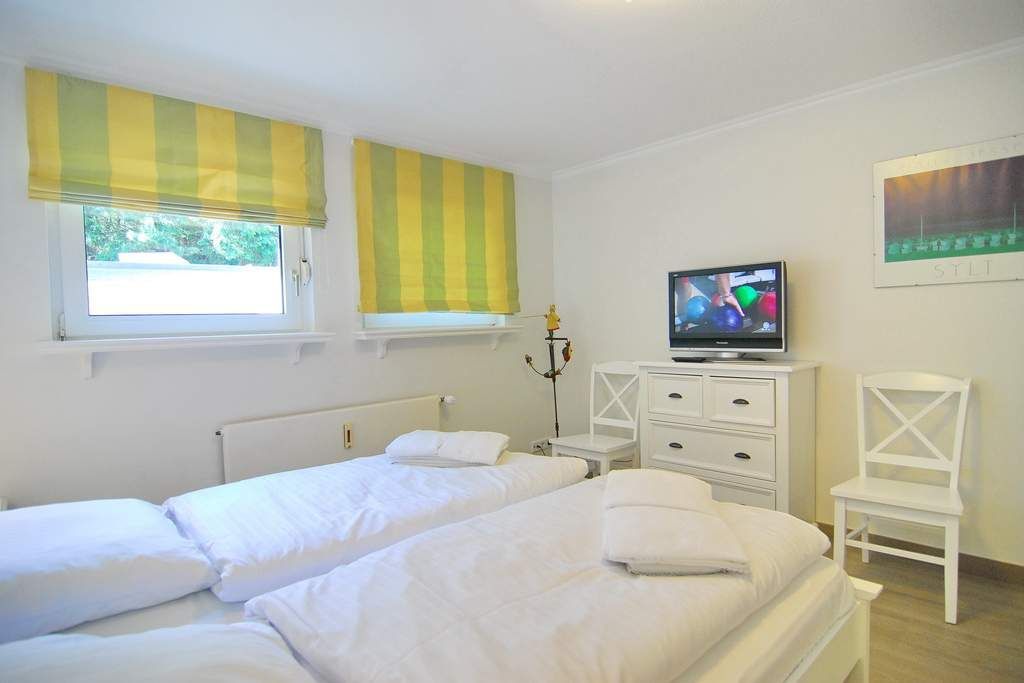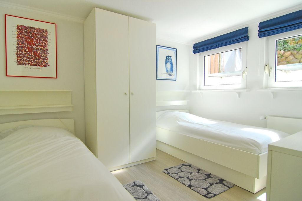 3-Zimmer-Ferienwohnung mit SW-Terrasse und Gartenmöbeln. Nichtraucher-Whg.! Ca. 70m². EG: Wohnzimmer mit Couchecke und Essplatz für 4 Personen, Kabel-TV und Stereoanlage. Separate Küche mit Geschirrspüler und Mikrowelle. Gäste-WC und Diele. UG: 1 Schlafzimmer mit Doppelbett (2x90x200) und TV, 1 Schlafzimmer mit Etagenbett (je 100x200) und einem weiteren Bett (140x200), Duschbad/WC. Das Appartement ist komplett gefliest. Schwimmbad und Sauna im Haus. Garage. Münzwaschmaschine und Trockner im Haus. Bettwäsche und Handtücher sind zur Anreise aufgezogen! Tierhaltung ist erlaubt und muss kostenpflichtig angemeldet werden!