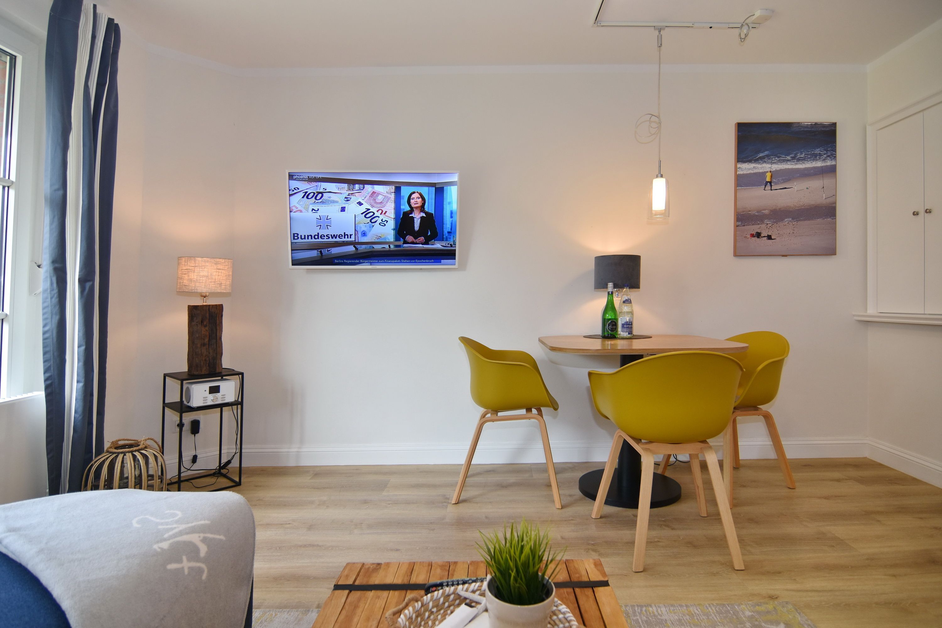 Sehr schönes 2-Zimmer-Apartment mit sonniger Südwestterrasse im Haus Luv. Ca. 50 m², Nichtraucher. Strandkorb (Apr.-Okt.) + Gartenmöbel. Gemeinschaftsgarten EG: Helles, schön möbliertes Wohnzimmer mit 2-Sitzer-Couch, Sessel, Essplatz und Küchenzeile mit Mikrowelle und 2-Platten-Herd, Flat-TV, Radio, W-LAN (ohne Gewähr). UG: Großes Schlafzimmer mit Box-Spring-Doppelbett (2x80x200), Einbauschränken und Flat-TV, Duschbad/WC, Flur. Tierhaltung ist nicht gestattet. Garage Nr. 2 kann kostenlos gebucht werden, Schönes Schwimmbad und finnische Sauna. Waschmaschine und Trockner (Münzautomaten). Bettwäsche und Handtücher sind zur Anreise aufgezogen!
