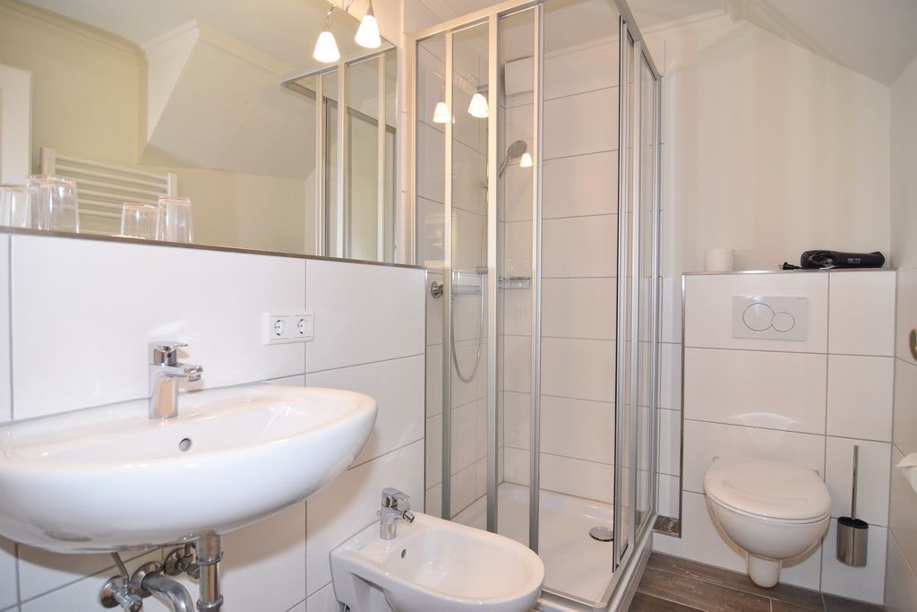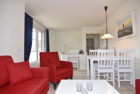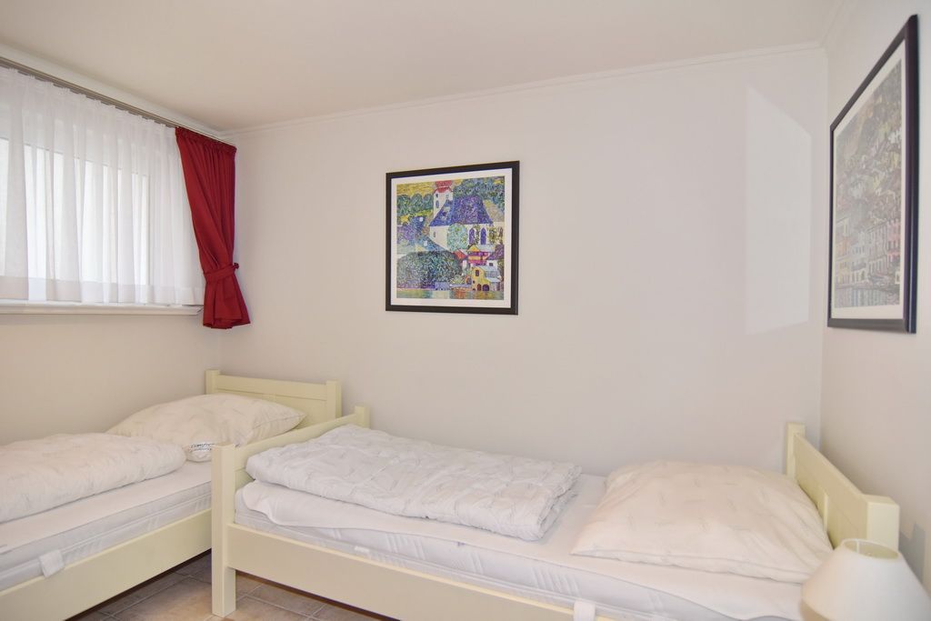 3-Zimmer-Ferienwohnung mit NW-Terrasse und Gartenmöbeln, Strandkorb (Apr.-Okt.). Nichtraucher-Whg.! Ca. 70m². EG: Wohnzimmer mit Couchecke und 2 Sesseln sowie Essplatz für 4 Personen, Kabel-TV und Stereoanlage, W-LAN (ohne Gewähr). Separate Küche mit Geschirrspüler und Mikrowelle. Gäste-WC und Diele UG: 1 Schlafzimmer mit Doppelbett und TV, 1 Schlafzimmer mit 2 Einzelbetten, neues Badezimmer mit Dusche/WC und Bidet. Schwimmbad, Sauna im Haus. Garage. Münzwaschmaschine und Trockner. Bettwäsche und Handtücher sind zur Anreise aufgezogen! Tierhaltung ist nicht gestattet.