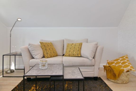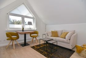 Wunderschönes 2-Zimmer-Apartment im Dachgeschoß mit moderner Ausstattung im Haus Luv. Ca. 35 m², Nichtraucher. Schönes Wohnzimmer mit moderner Kochzeile, Essplatz, bequeme 2-Sitzer-Couch, Flat-TV, Radio, W-LAN (ohne Gewähr). Duschbad/WC, separater Schlafraum mit Box-Spring-Doppelbett (2x90x200) und Einbauschrank. Kostenlose Nutzung des Schwimmbades und der Sauna. Münzwaschmaschine und -trockner. Parken ist an der Straße möglich. Tierhaltung nicht gestattet. Bettwäsche und Handtücher sind zur Anreise aufgezogen!