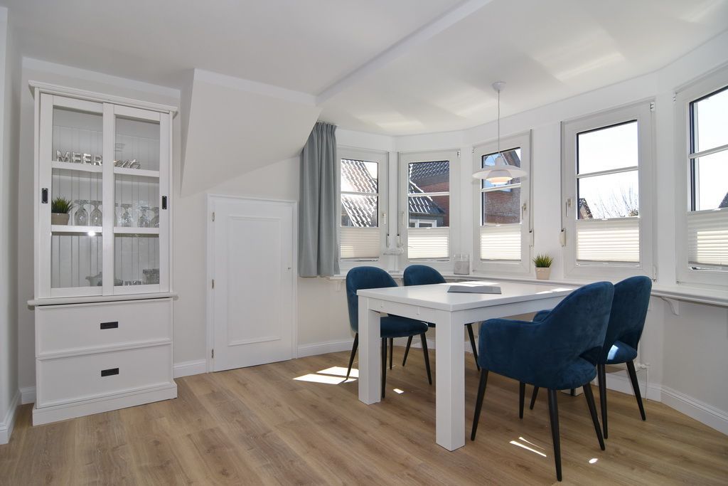 Schickes, sonniges 2-Zimmer-Apartment im 1. OG mit Westbalkon im Haus Lee. Ca. 60 m², Nichtraucher. OG: Licht durchflutetes Wohnzimmer mit Doppelschlafcouch (Liegefläche 150x200), 2 Sessel, Essecke für 4 Personen, sonniger Westbalkon, Flat-TV (Radiosender integriert), W-LAN (ohne Gewähr). Separate Küche mit Geschirrspüler, 4-Platten-Induktionskochfeld und Backofen (darunter ist die Besteckschublade), Duschbad/WC mit Bidet und Diele/Garderobe. DG: Schlafzimmer mit Box-Spring-Doppelbett, Einbauschränken und Flat-TV. Schwimmbad und finnische Sauna. Garage Nr. 10 kann kostenlos gebucht werden. Münzwaschmaschine und -trockner. Tierhaltung ist nicht gestattet. Bettwäsche und Handtücher sind zur Anreise aufgezogen!