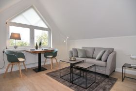 Wunderschönes 2-Zimmer-Apartment im Dachgeschoß mit moderner Ausstattung im Haus Lee. Ca. 35 m², Nichtraucher. Schönes Wohnzimmer mit moderner Kochzeile, Essplatz, bequeme 2-Sitzer-Couch, Flat-TV, Radio, W-LAN (ohne Gewähr). Duschbad/WC, separater Schlafraum mit (2x90x200) und Einbauschrank. Kostenlose Nutzung des Schwimmbades und der Sauna. Münzwaschmaschine und -trockner. Parken ist an der Straße möglich. Tierhaltung nicht gestattet. Bettwäsche und Handtücher sind zur Anreise aufgezogen!