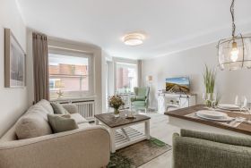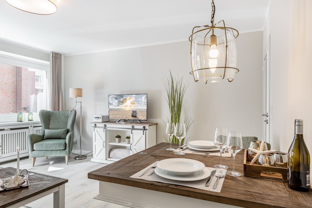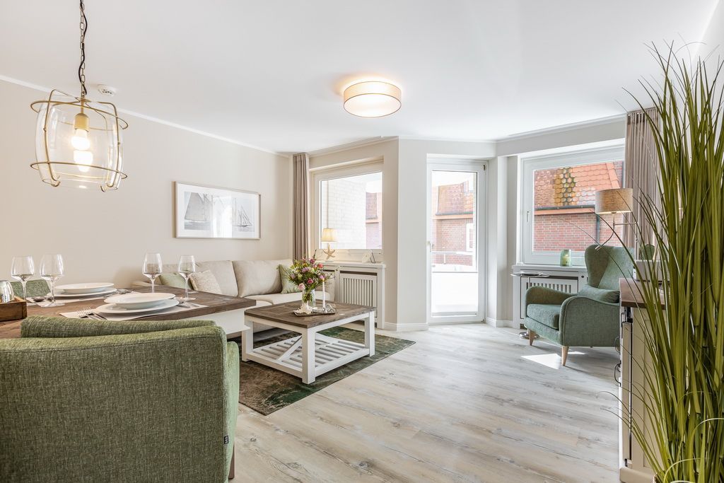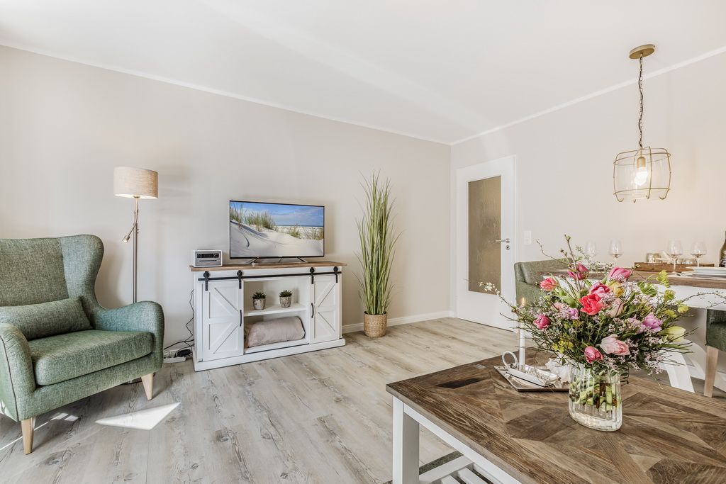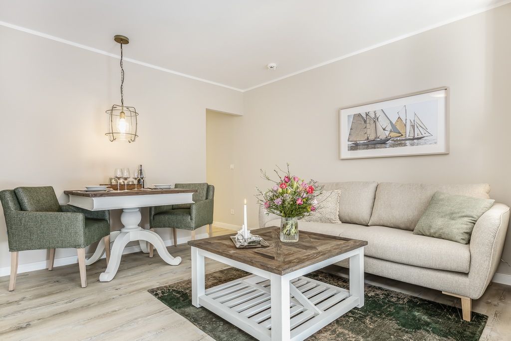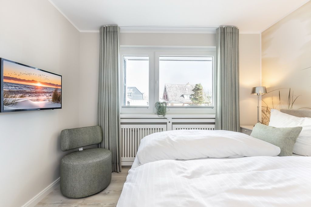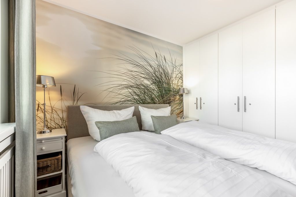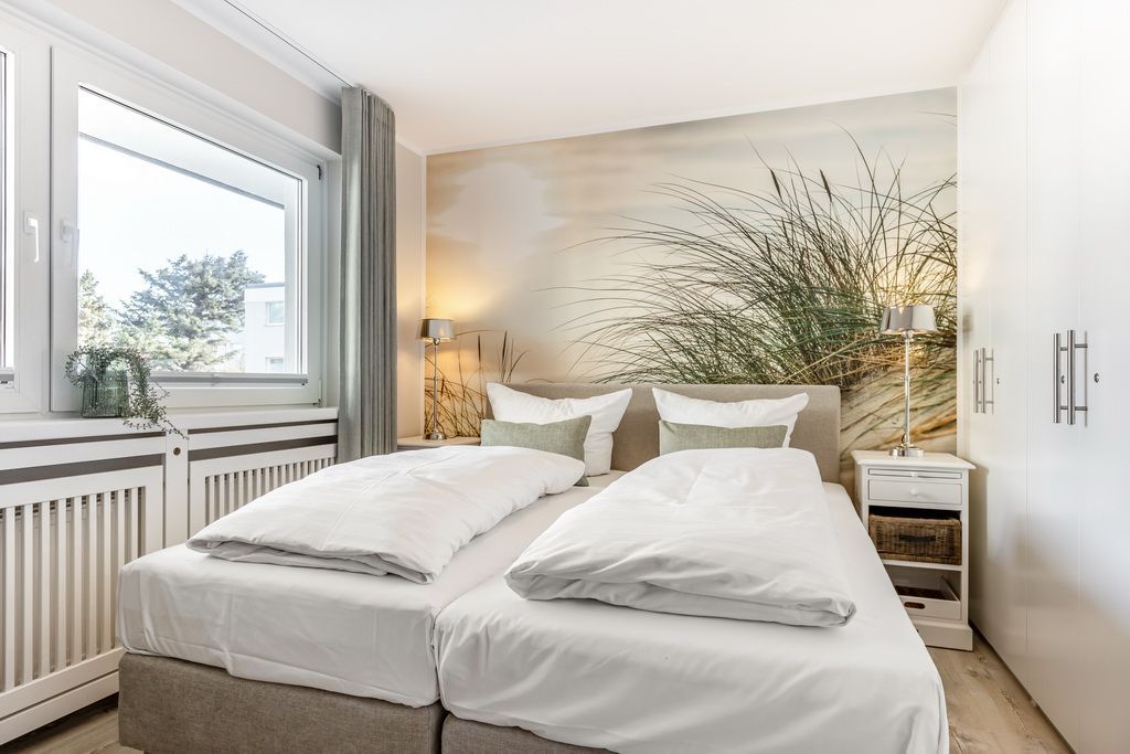 Schönes 2-Zimmer-Appartement im Hochparterre im Haus Undine mit Südbalkon. Ca. 55 m² für 2 Personen in direkter Strandlage, Nichtraucher. Schönes Wohnzimmer mit 2-Sitzer-Couch und Sessel, Essplatz für 2 Personen, Flat-TV, Stereoanlage, W-LAN (ohne Gewähr), Tresor, kleiner Südbalkon mit Balkonmöbeln. Offene Küche mit Backofen, Mikrowelle und Geschirrspüler. Schlafzimmer mit Boxspringbett (2x90x200), Kleiderschrank und Flat-TV, Duschbad/WC mit Waschmaschine und Trockner. Garage kann im Nachbarhaus Olympia kostenpflichtig angemietet werden. Tierhaltung ist gestattet (kostenpflichtig). Bettwäsche und Handtücher können kostenpflichtig dazu gebucht werden.