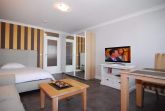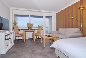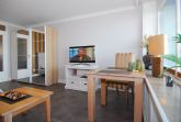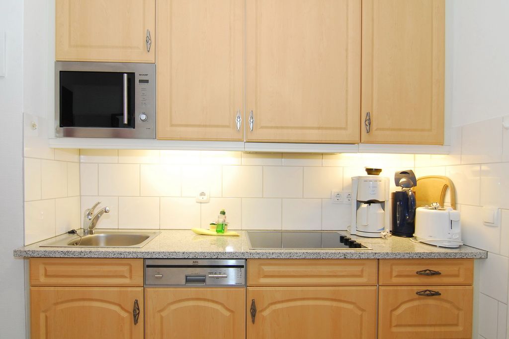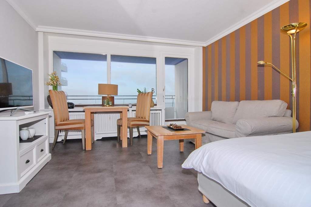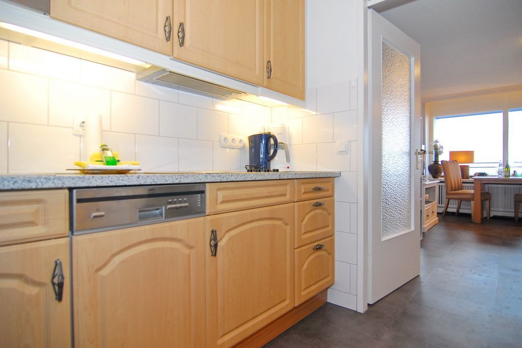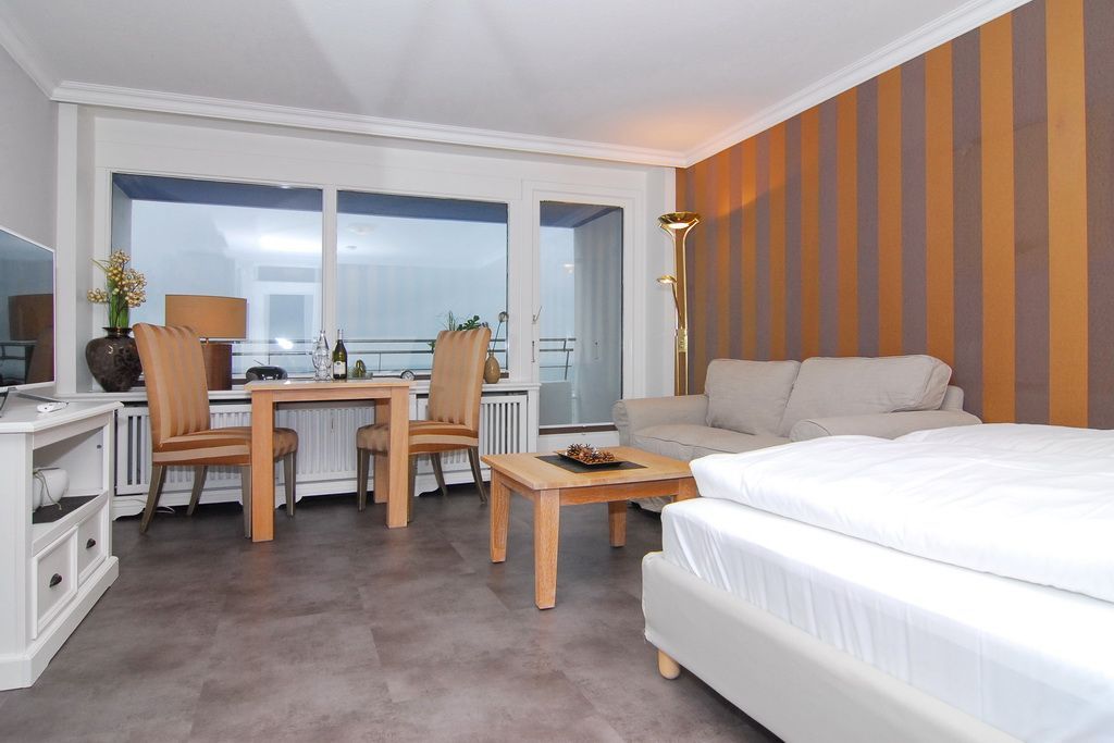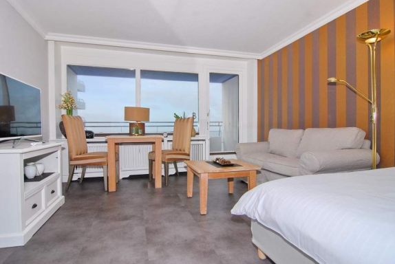 Gepflegte 1-Zimmer-Ferienwohnung ca. 34 qm; Haus Sylter Welle. Wohn-/Schlafraum mit festem Doppelbett (160x200), Eßplatz am Fenster, Couch, Flat-TV, Radio, W-Lan (ohne Gewähr) Westbalkon mit Meeresblick, Küchenzeile mit Geschirrspüler und Mikrowelle im Flurbereich, Duschbad/WC (Fön). Das Apartment ist komplett gefliest. Rauchen und Tierhaltung sind nicht gestattet! Bettwäsche und Handtücher sind zur Anreise aufgezogen. Ein PKW-Stellplatz kann kostenpflichtig zugebucht werden.