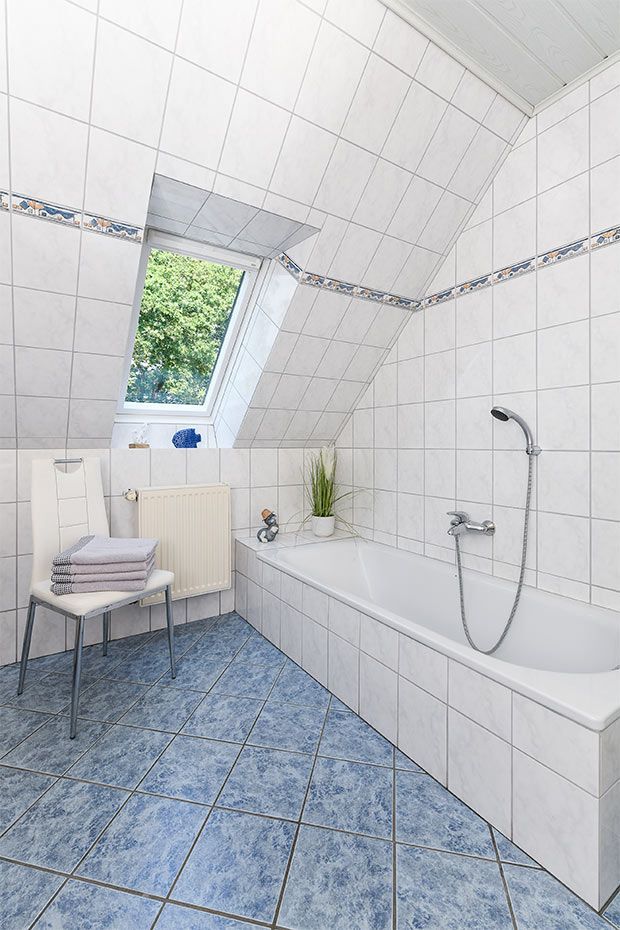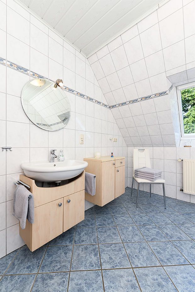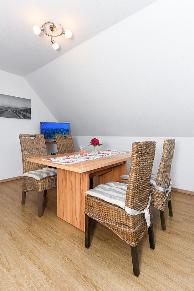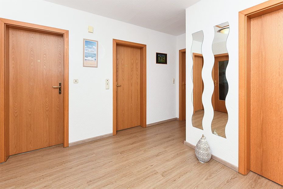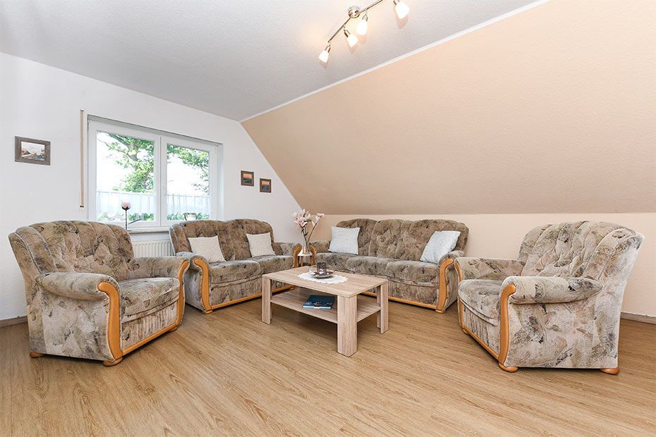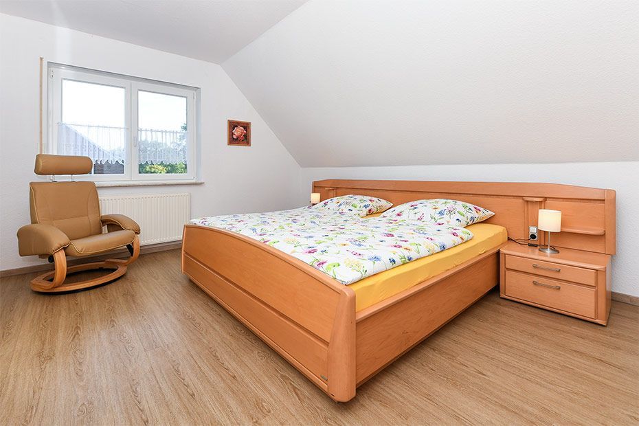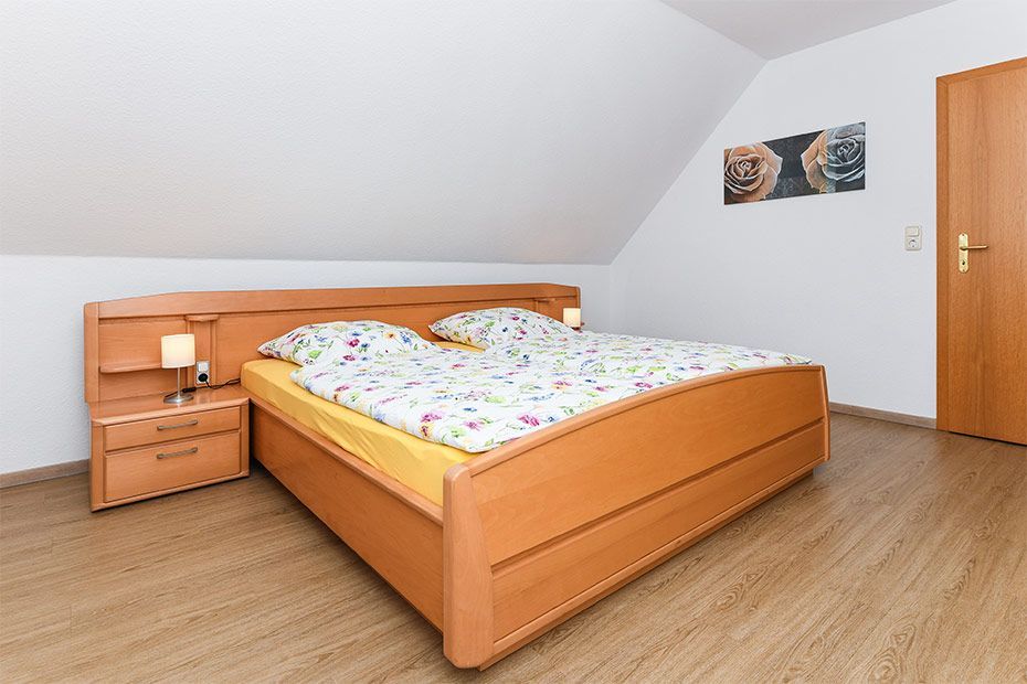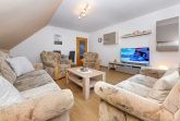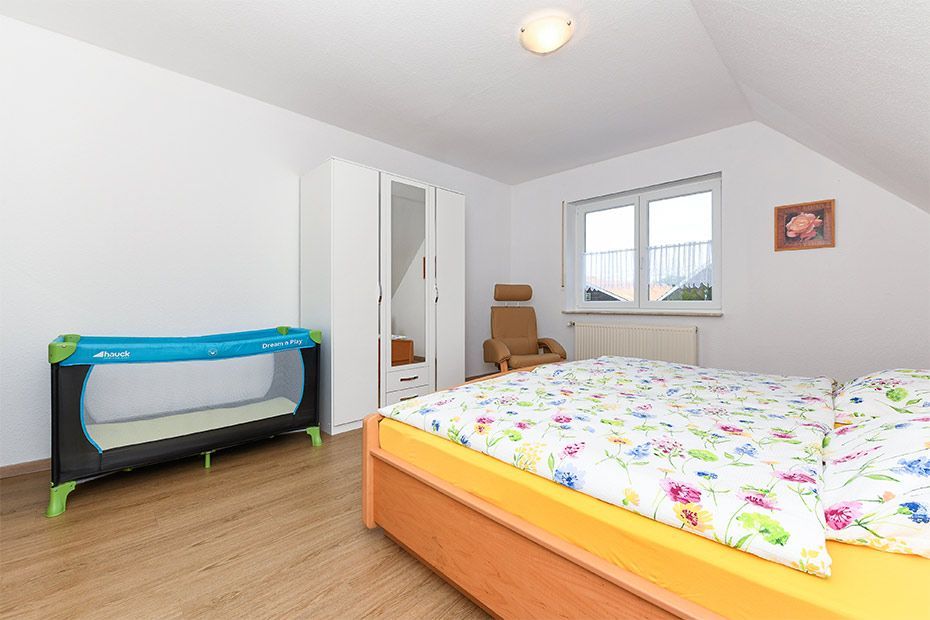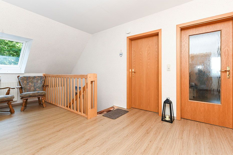 Größe ca. 90 Quadratmeter, Wohnzimmer, Küche, Schlafzimmer, zweites separates Schlafzimmer/Kinderzimmer, Badezimmer mit Badewanne, Dusche und Waschtisch, separates WC mit Waschtisch, Obergeschoss, optimal für 2 bis 4 Personen.