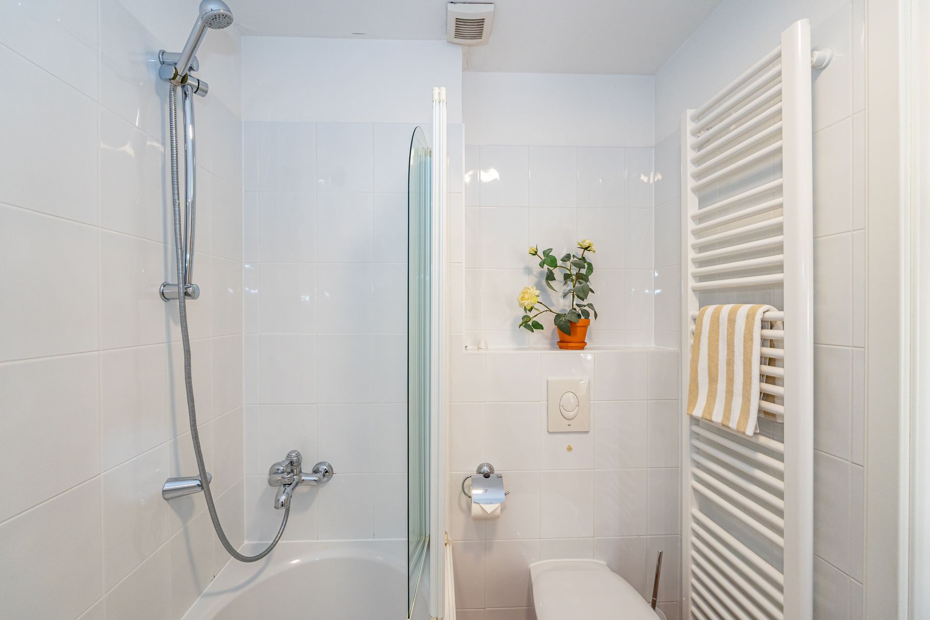 Das zweite Badezimmer besitzt eine Badewanne mit Duschvorrichtung, Waschtisch, Handtuchtrockner, WC und Fön.