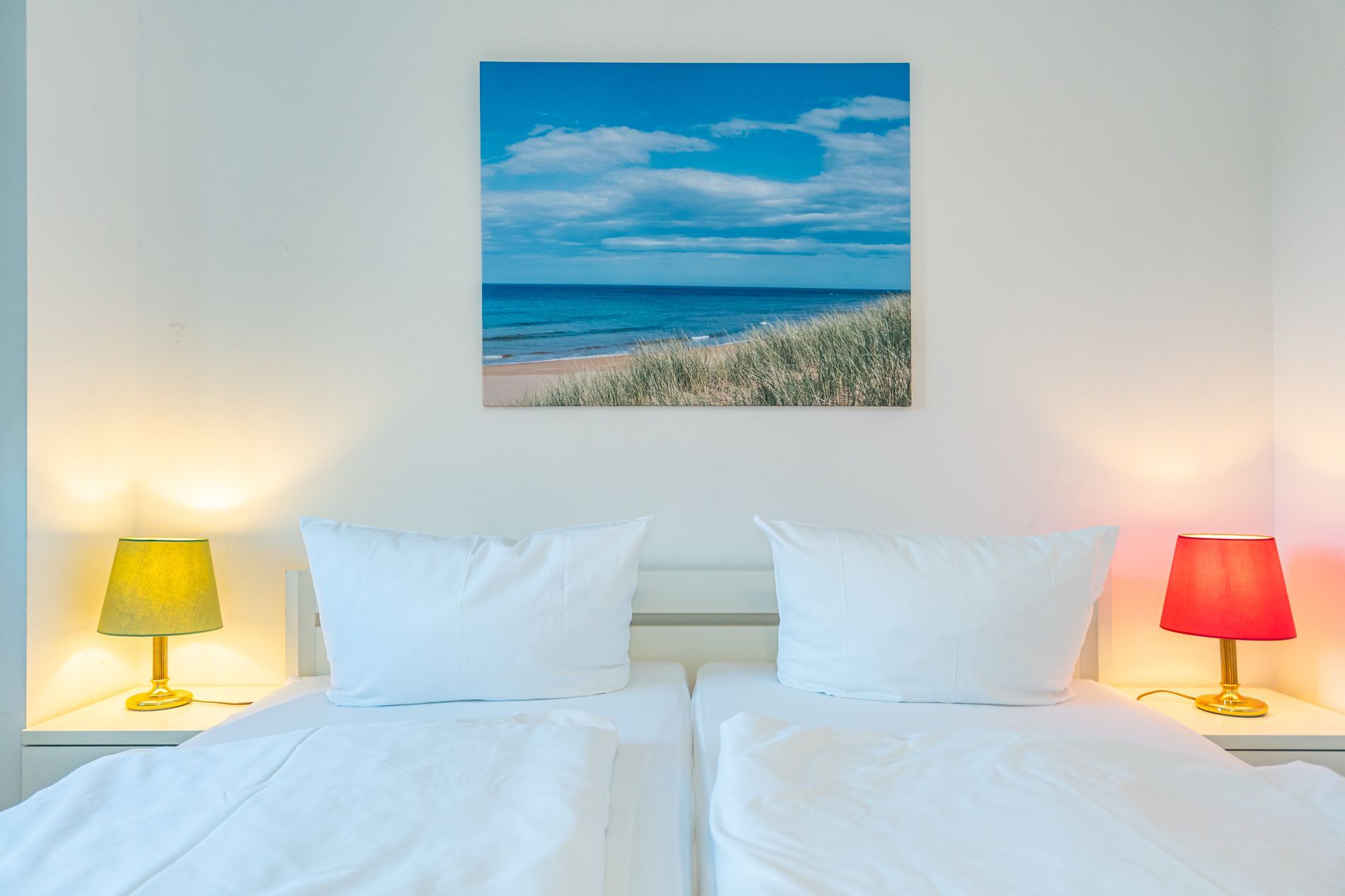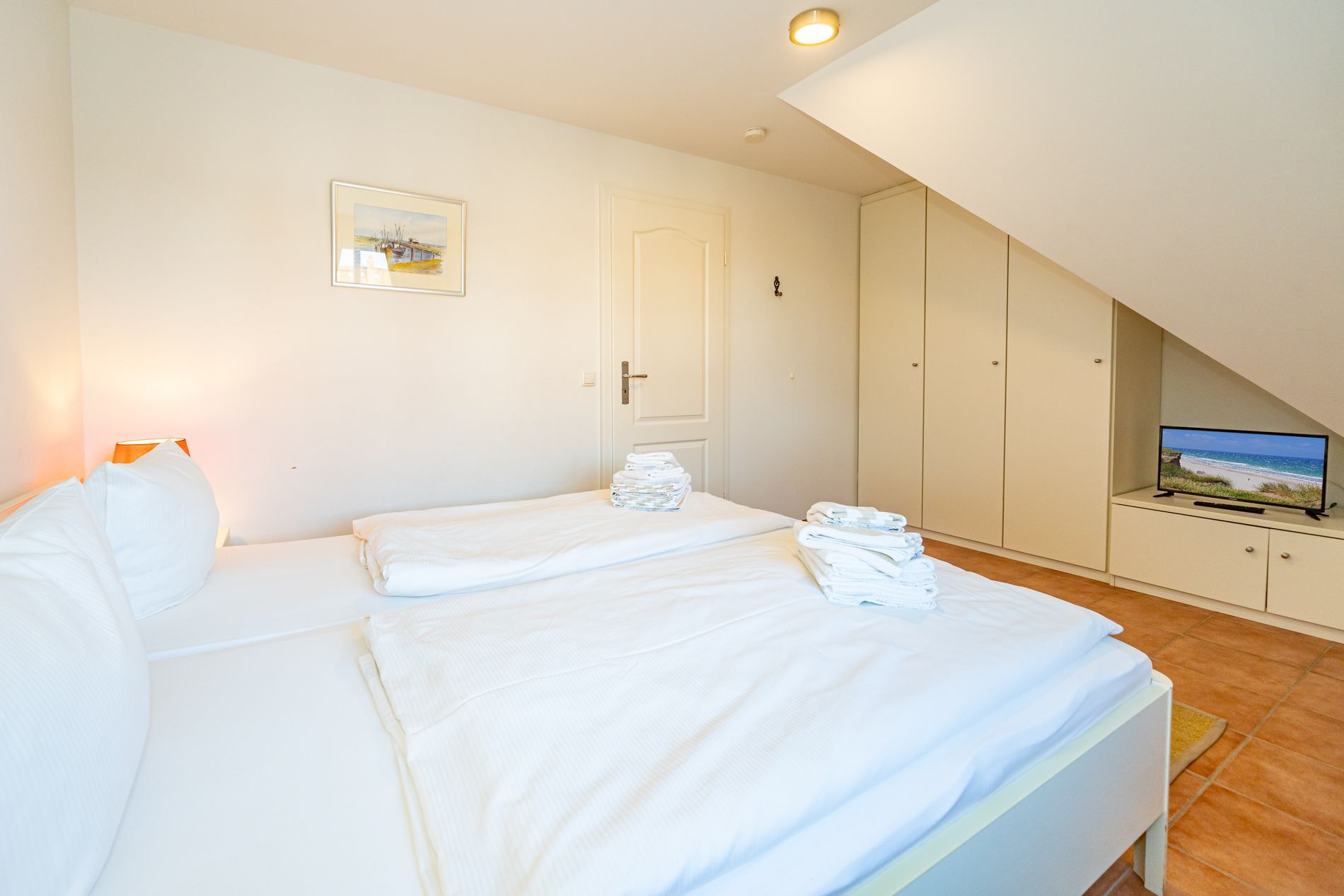 Zusätzlich gibt es noch ein weiteres, kleines Schlafzimmer mit zwei Einzelbetten (0,90 x 2,00 m) sowie TV.