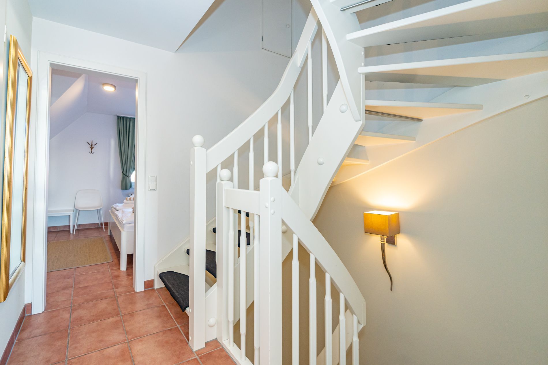 Im 1. Obergeschoss befindet sich ein großzügiges Schafzimmer mit Doppelbett (0,90 m x 2,00 m), Kleiderschrank, Stuhl und zusätzlichem Flachbild-TV. Und ein weiteres gemütliches Doppel-Schlafzimmer (0,90 x 2,00 m) mit Kleiderschrank, Stuhl und TV.