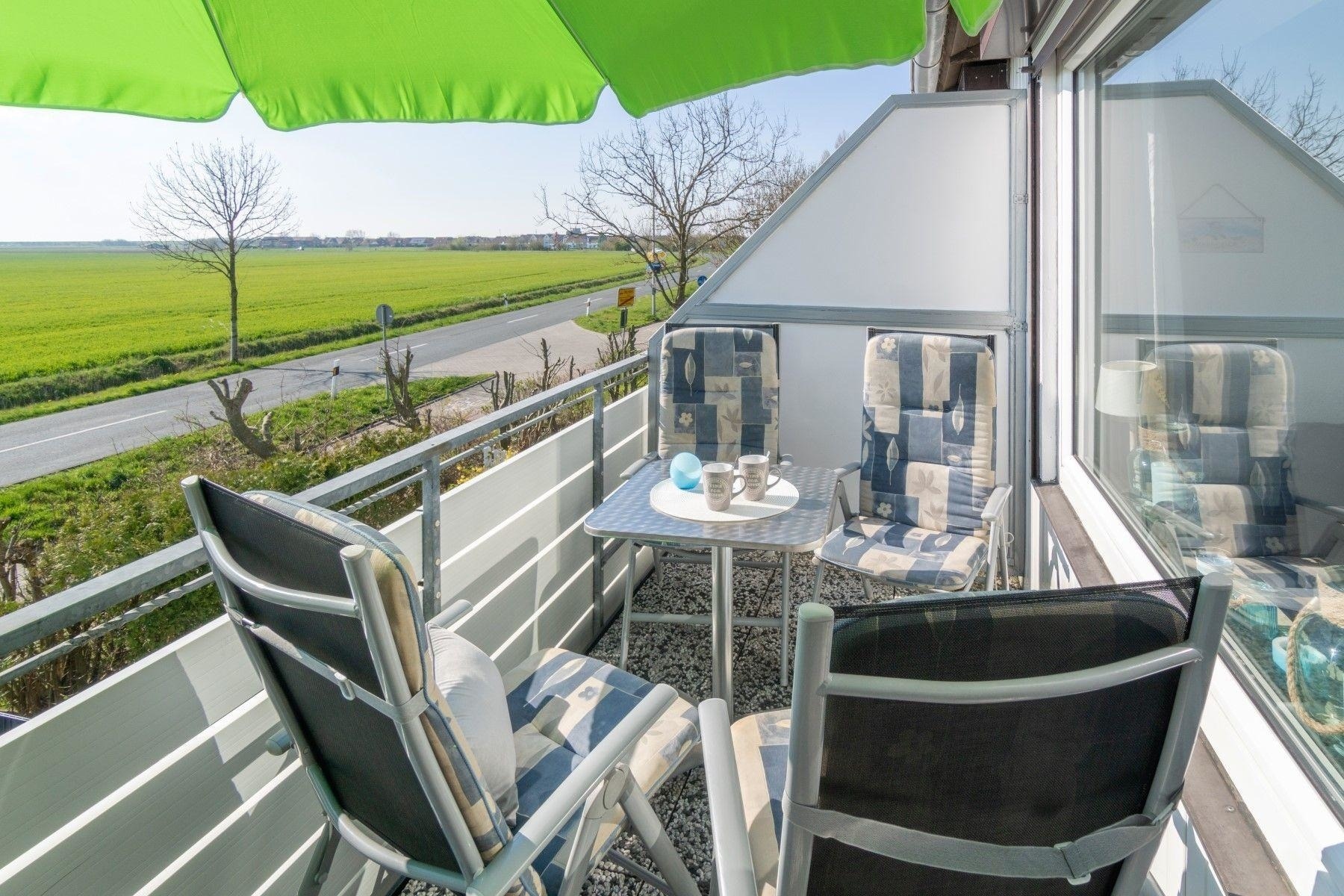 Die Ferienwohnung bietet einen einladenden Balkon, der ideal für entspannte Stunden im Freien ist. Der private Außenbereich schafft eine ruhige Atmosphäre, um die Natur zu genießen und frische Luft zu tanken. Hier lässt sich der Tag perfekt mit einem Frühstück oder einem Glas Wein ausklingen, während die Umgebung zur Erholung einlädt.