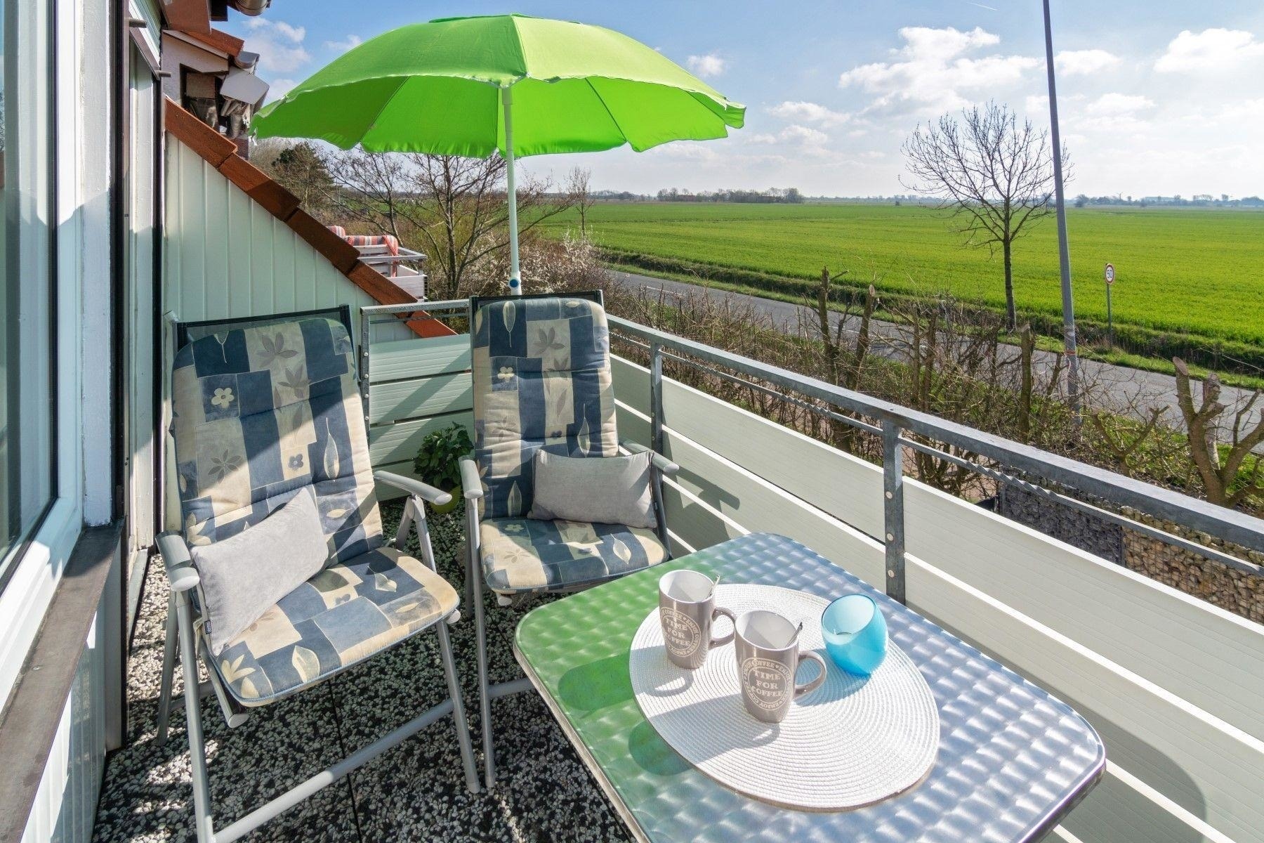 Die Ferienwohnung bietet perfekten Gartenblick und eignet sich ideal für Paare oder kleine Gruppen, die entspannte Tage in der malerischen Umgebung von Norddeich verbringen möchten.
