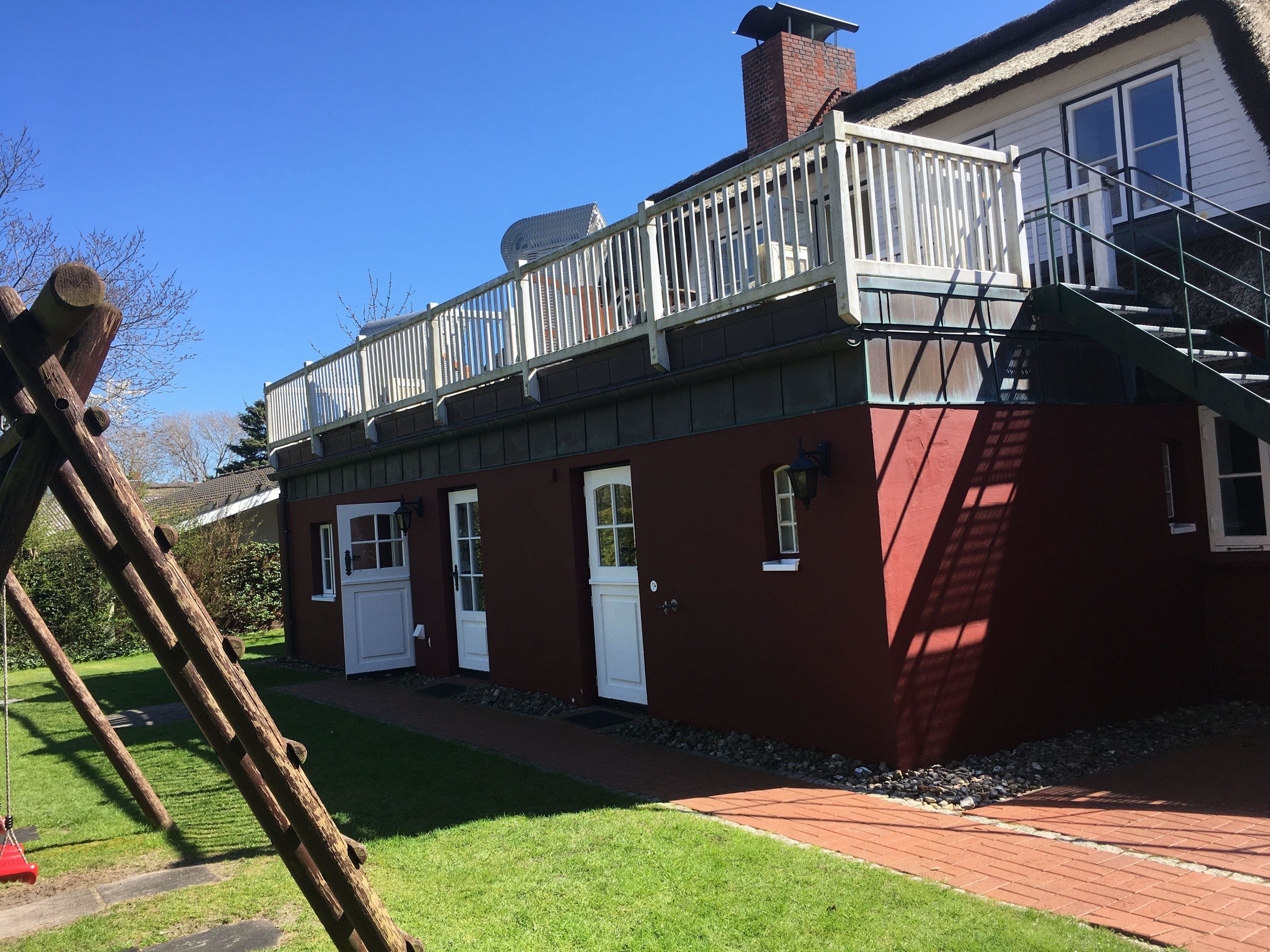 Das ruhig gelegene und vollständig renovierte Reetdachhaus liegt auf einem ca. 2000 qm großen angelegten Gartengrundstück mit altem Baumbestand. Zum Strand sind es ca. 15 Gehminuten, zum Dorfkern mit vielen Restaurants und Geschäften ca. 2 Gehminuten.