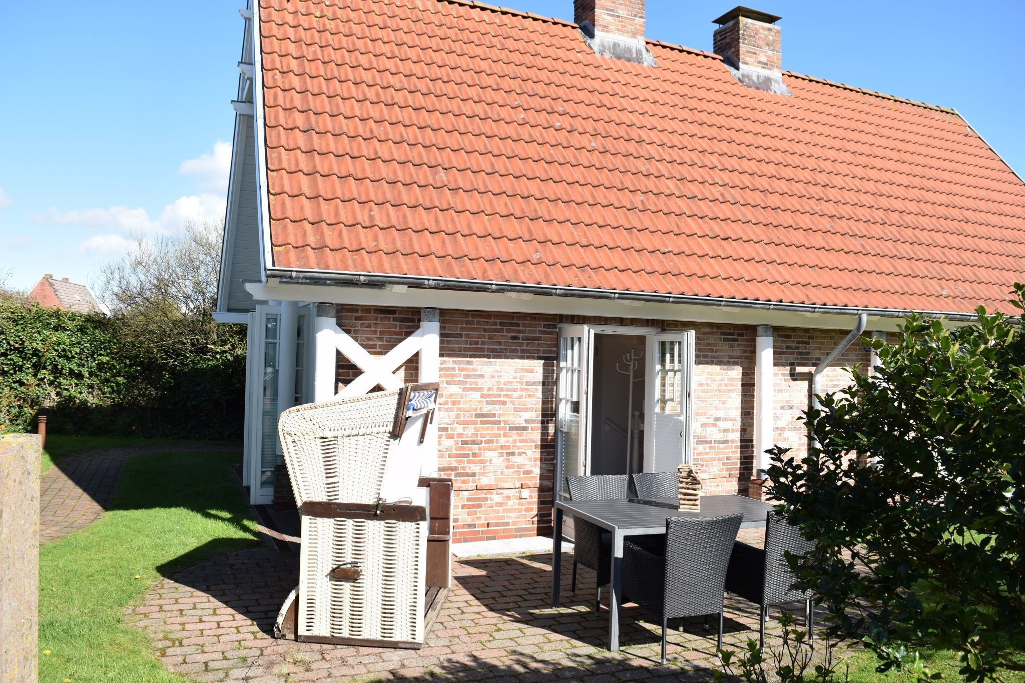 Gemütliche Nichtraucher-Feriendoppelhaushälfte mit 3 Zimmern, im Landhausstil (ca. 80 qm) mit Westterrasse (Saison-Strandkorb ca. 01. April 15. Oktober und Gartenmöbel mit Auflagen) für max. 4 Personen.