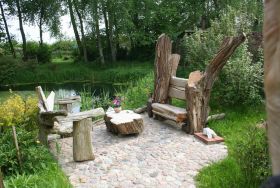 Zum Anwesen gehören eine Töpferei, ein Teehaus und ein großer Park mit den Werken von 70 Künstlern und Deutschlands größtem Steinkreis. Außerdem finden Sie in der direkten Umgebung, weitere künstlerische Werkstätten und eine Praxis für alternative Heilmethoden.