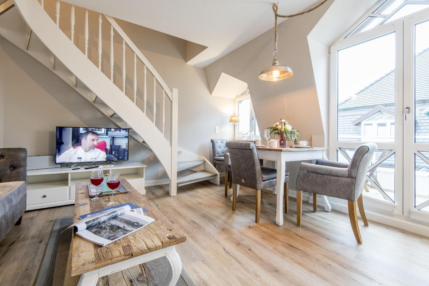Diese stilvolle 3-Zimmer-Ferienwohnung erstreckt sich über ca. 60 qm und zwei Ebenen und bietet Platz für bis zu 4 Personen. Die Wohnung besticht durch ihr exklusives Design im modernen Strandhaus-Stil (Riviera Maison) und liegt in einer ruhigen, strandnahen Umgebung in Westerland. Der Strand ist nur 500 Meter entfernt, und die Innenstadt sowie der Bahnhof sind in wenigen Minuten fußläufig erreichbar.