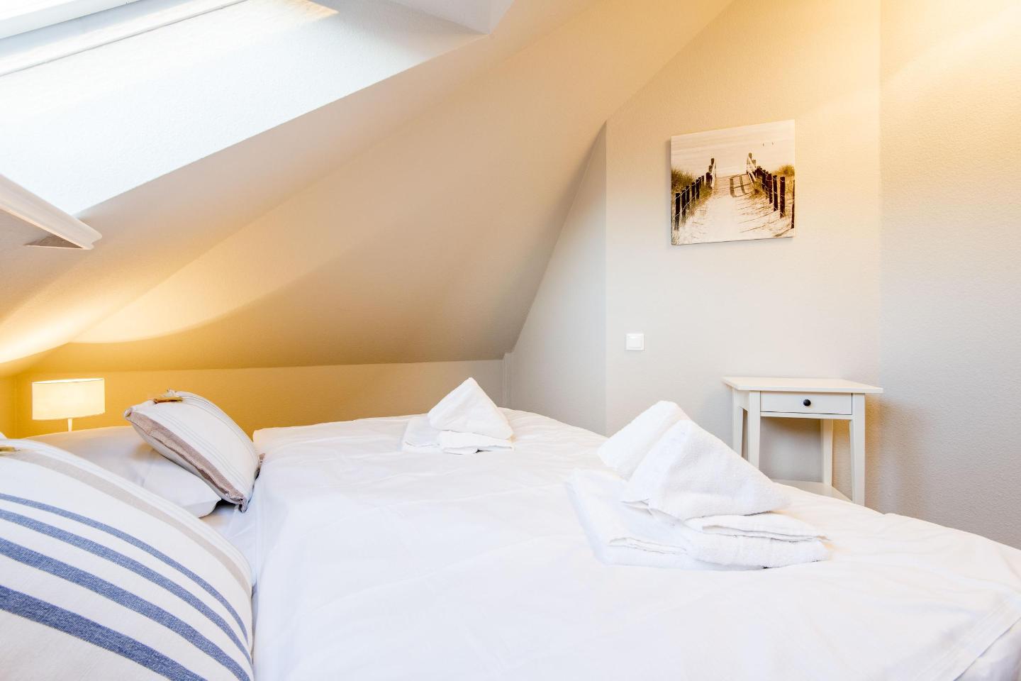 Das Tageslicht-Badezimmer bietet eine Badewanne mit integrierter Dusche, ein WC, Fußbodenheizung, eine Waschmaschine, einen Handtuchwärmer und einen Föhn – ideal für entspannende Momente nach einem langen Strandtag.