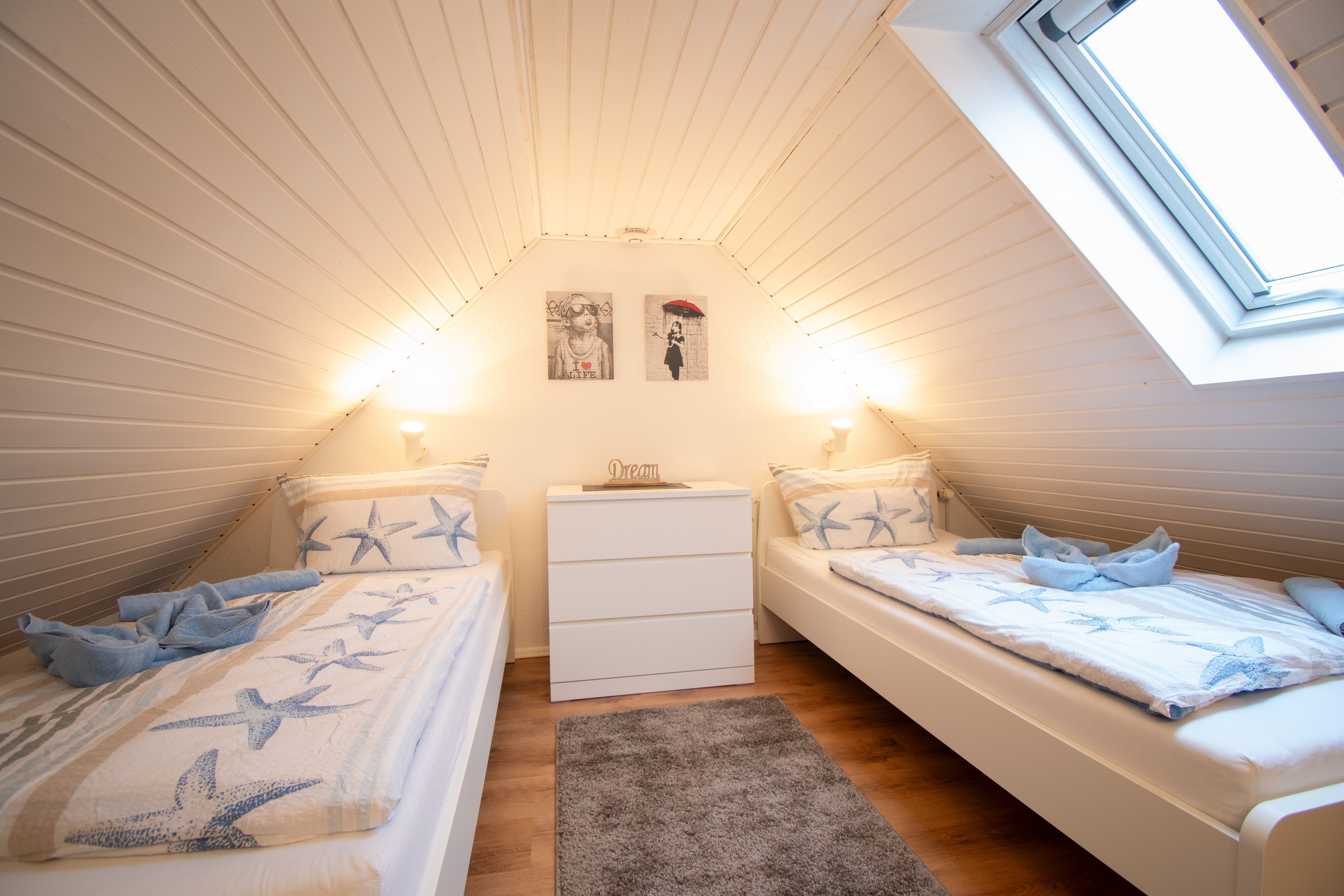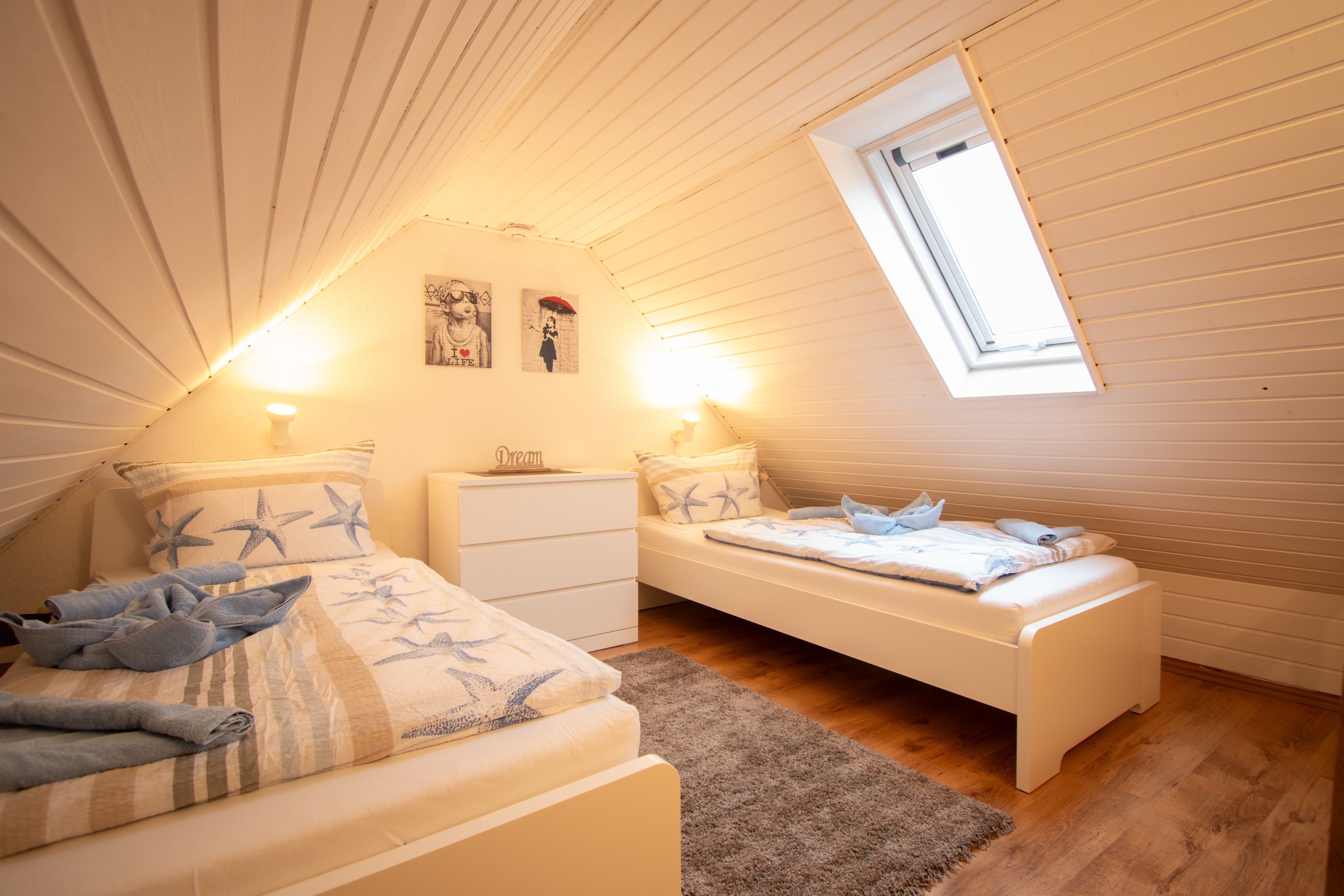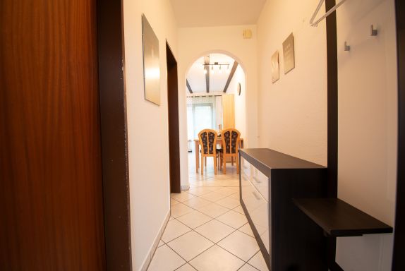 Moin und Willkommen im Reihenmittelhaus Hübner, Hollwert 39e. Strandnah gelegen und in ruhiger Sackgassenlage ideal für die Familie und den Hundefreund. Ab Diele geht es links in die separate Küche. Hier befindet sich auch das Gäste-WC mit Waschmaschine. Geradeaus geht es weiter in den Wohnbereich mit Essplatz und Terrassenausgang. Schlafmöglichkeiten für fünf Personen befinden sich im ersten Obergeschoss und im Dachgeschoss; ein Schlafzimmer mit Doppelbett und eines oben mit zwei Einzelbetten. Eine 140x200 Schlafcouch steht auf der Flurebene. Die Terrasse ist sichtgeschützt durch zwei Holzelemente und begrünt. Ihr Fahrzeugstellplatz befindet sich unmittelbar vor der Reihenhausanlage.