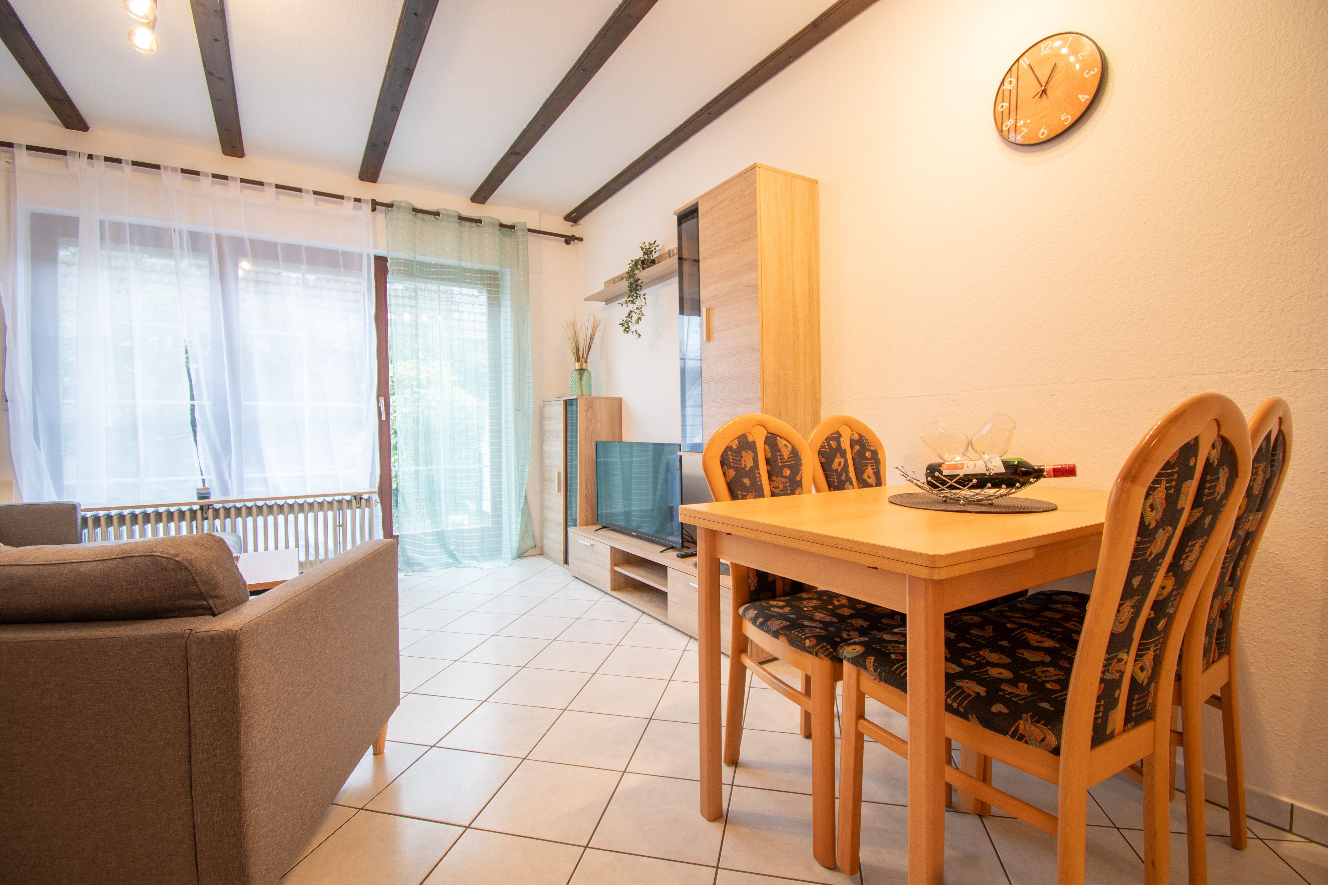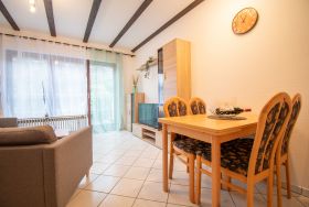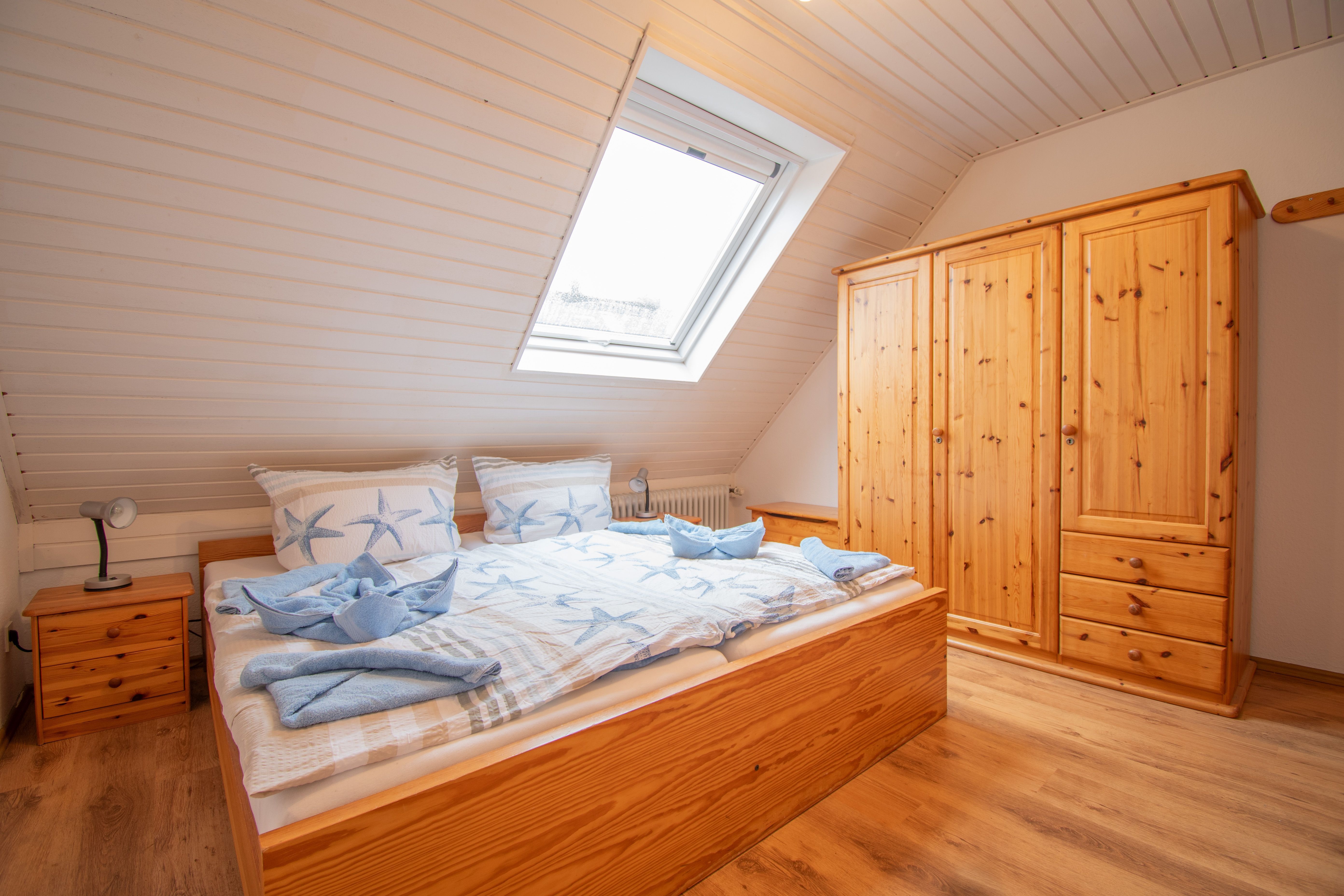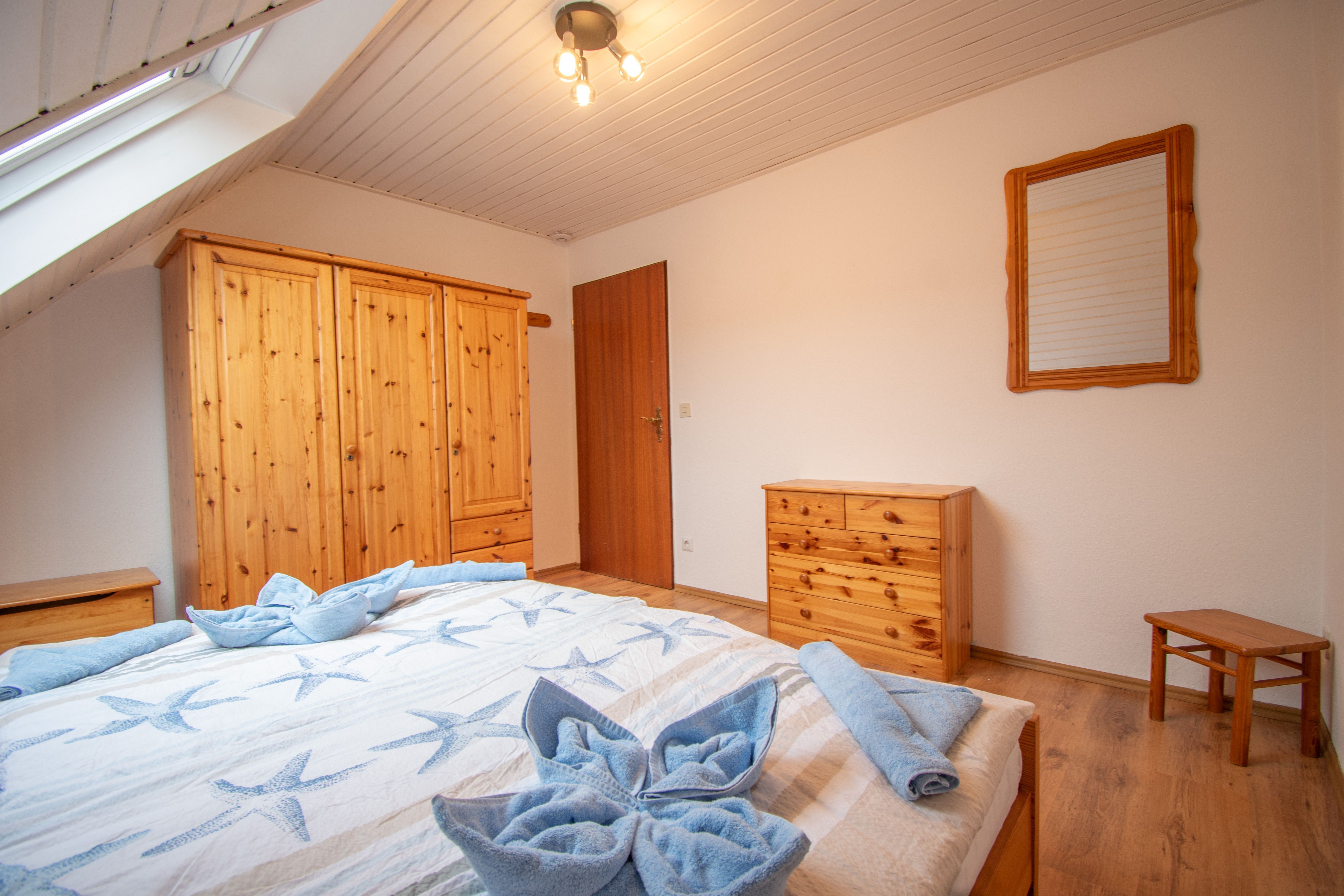 Moin und Willkommen im Reihenmittelhaus Hübner, Hollwert 39e. Strandnah gelegen und in ruhiger Sackgassenlage ideal für die Familie und den Hundefreund. Ab Diele geht es links in die separate Küche. Hier befindet sich auch das Gäste-WC mit Waschmaschine. Geradeaus geht es weiter in den Wohnbereich mit Essplatz und Terrassenausgang. Schlafmöglichkeiten für fünf Personen befinden sich im ersten Obergeschoss und im Dachgeschoss; ein Schlafzimmer mit Doppelbett und eines oben mit zwei Einzelbetten. Eine 140x200 Schlafcouch steht auf der Flurebene. Die Terrasse ist sichtgeschützt durch zwei Holzelemente und begrünt. Ihr Fahrzeugstellplatz befindet sich unmittelbar vor der Reihenhausanlage.