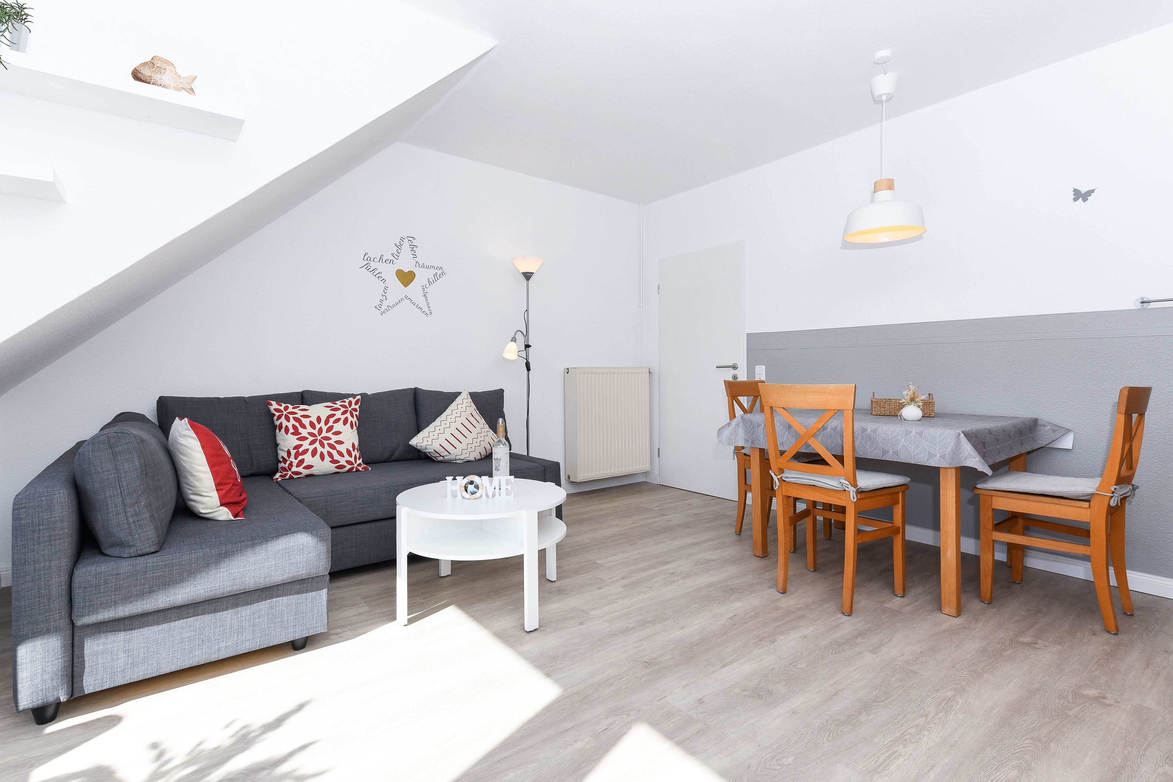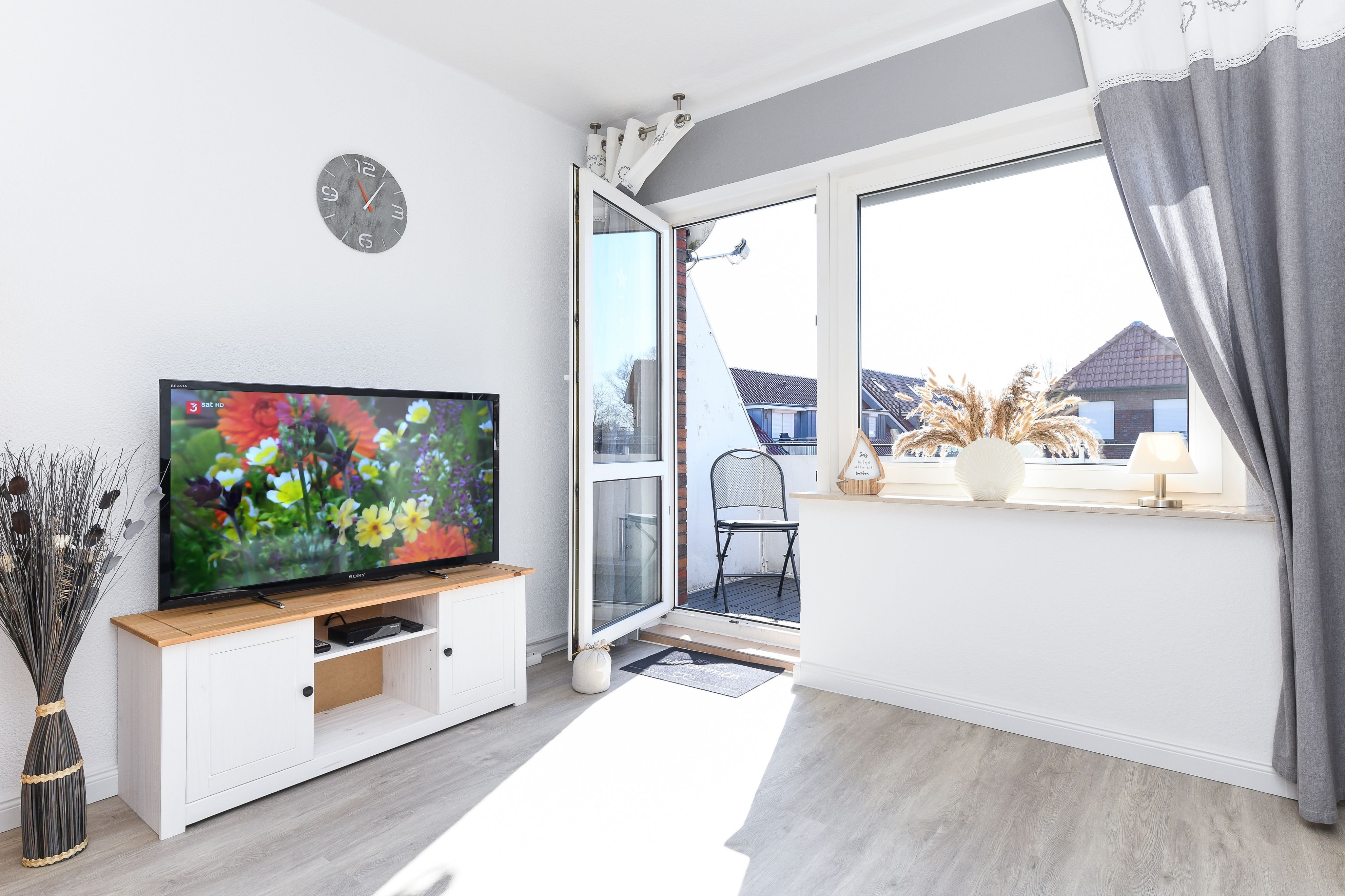Unsere Ferienwohnung ist ungefähr 50 Quadratmeter groß, gemütlich und komfortabel eingerichtet sowie für 1 bis 2 Personen nebst zusätzlichem Kleinkind bestens geeignet. Ein geschützter Balkon ist ebenso vorhanden wie z. B. eine voll ausgerüstete Küche mit Geschirrspülmaschine. So ist die Ferienwohnung mit allem ausgestattet, was Sie in Ihrem Urlaub in Bensersiel benötigen könnten.