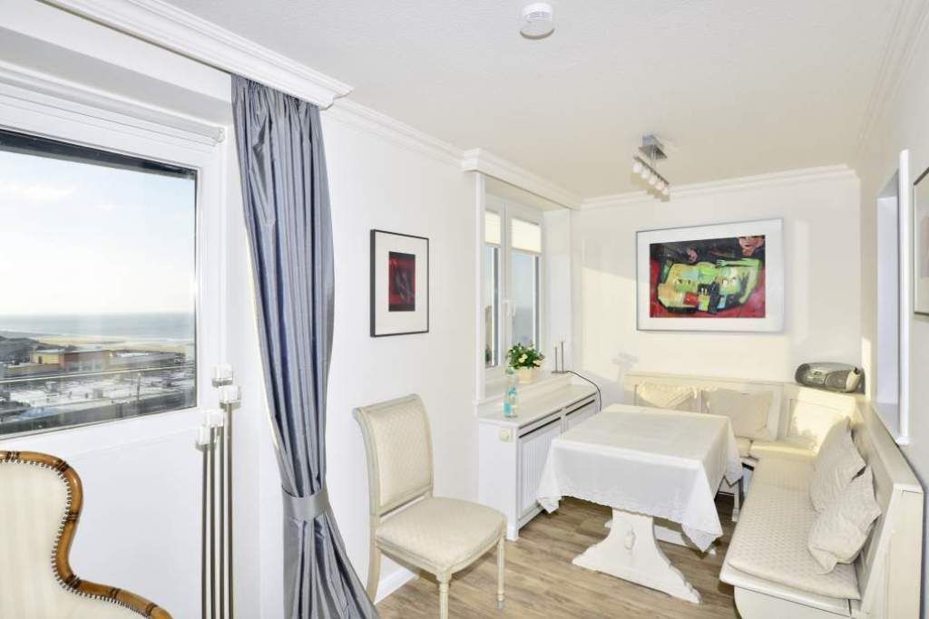 Diese lichtdurchflutete 2-Zimmer-Nichtraucherwohnung auf ca. 68 m² bietet Ihnen ein ganz besonderes Urlaubserlebnis: Genießen Sie einen atemberaubenden Rundumblick auf die Nordsee, das Wattenmeer und die weite Insellandschaft Sylts und das von gleich drei Balkonen aus! Ob morgens die Sonne im Osten oder nachmittags auf dem Südbalkon hier begleitet Sie das Tageslicht von früh bis spät. Balkonmöbel laden dazu ein, den Ausblick in vollen Zügen zu genießen.