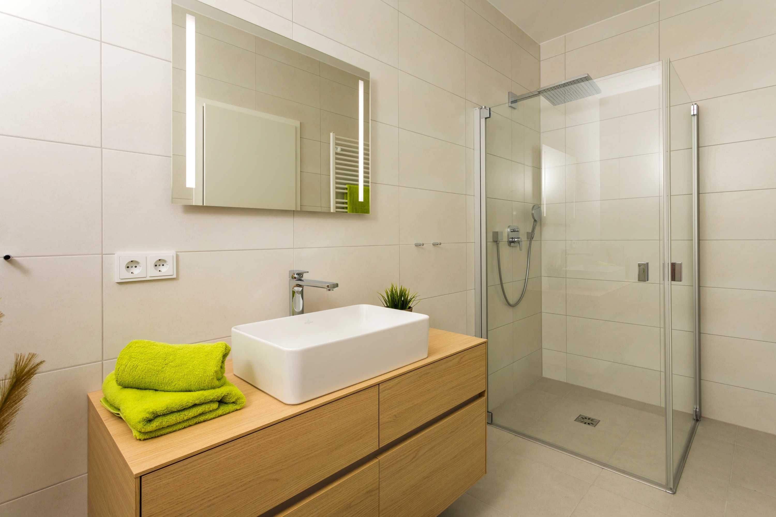• Badezimmer mit WC, Dusche und Haartrockner
