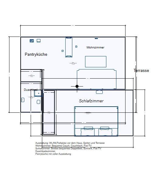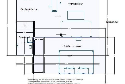Hier finden bis zu 2 Personen ihr Urlaubsdomizil vor. Die Wohnung verfügt über einen offen gestalteten Wohn-Essbereich mit voll ausgestatteter Pantry-Küche. Die Küche ist modern und rund um mit den gebräuchlichen Utensilien ausgestattet - Kühlschrank-mit Gefrierfach, ein Ceranfeld mit 2 Platten, Kombi-Backofen (Heißluft, Ober-Unterhitze), eine Kaffeemaschine, ein Toaster sowie ein Wasserkocher stehen Ihnen hier unter anderem zur Verfügung. Eine Mikrowelle kann auf Wunsch bereitgestellt werden. Eine Waschmaschine und ein Geschirrspüler sind ebenfalls in der Pantry-Küche vorhanden. WLAN, Parkplatz vor dem Haus auf dem Grundstück. Das Wohnzimmer ist mit einer Sitzgruppe und einem Essbereich ausgestattet und verfügt zudem über einen Flatscreen-Smart-TV. (Netflix/Amazon-Prime mit Ihrem eigenen Zugang nutzbar) Das Schlafzimmer bietet Ihnen mit einem hochwertigen Doppelbett (1,80m x 2,00m) Kleiderschrank sowie einem zusätzlichen 2. Smart-TV (Flat) eine Ruhe Oase für erholsame Stunden. Ein Duschbadezimmer mit WC, Haartrockner befindet sich im Innenbereich.