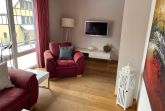 Sitzbereich mit Kamin und Flat-TV mit ca. 80cm Bilddiagonale, Stereoanlage mit Radio, Internet / WLAN