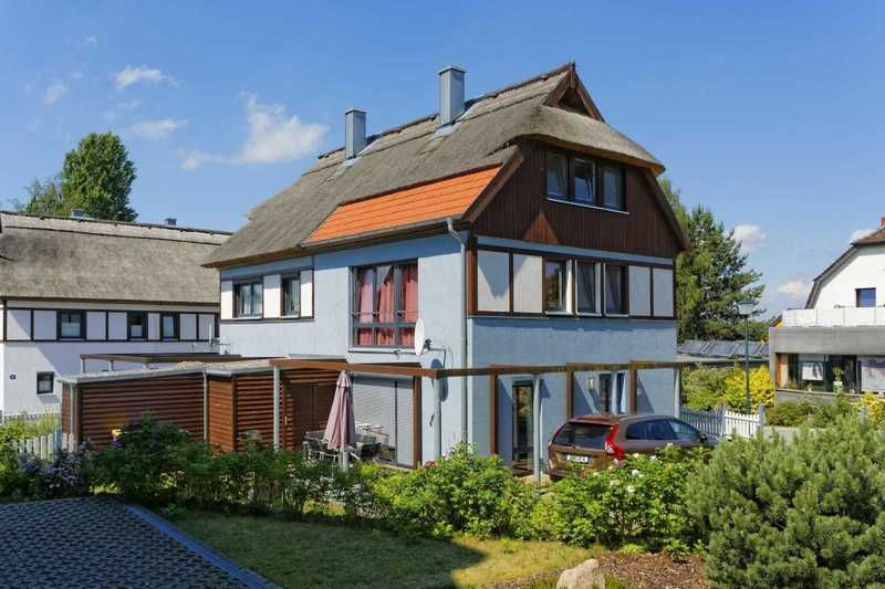 Die exklusive Reetdach-Doppelhaushälfte befindet sich in zentraler Ortslage, zum Strand sind es ca. 8 Gehminuten, das Grundstück ist ca. 263 m² groß und bietet eine Wohnfläche von ca. 103 m².