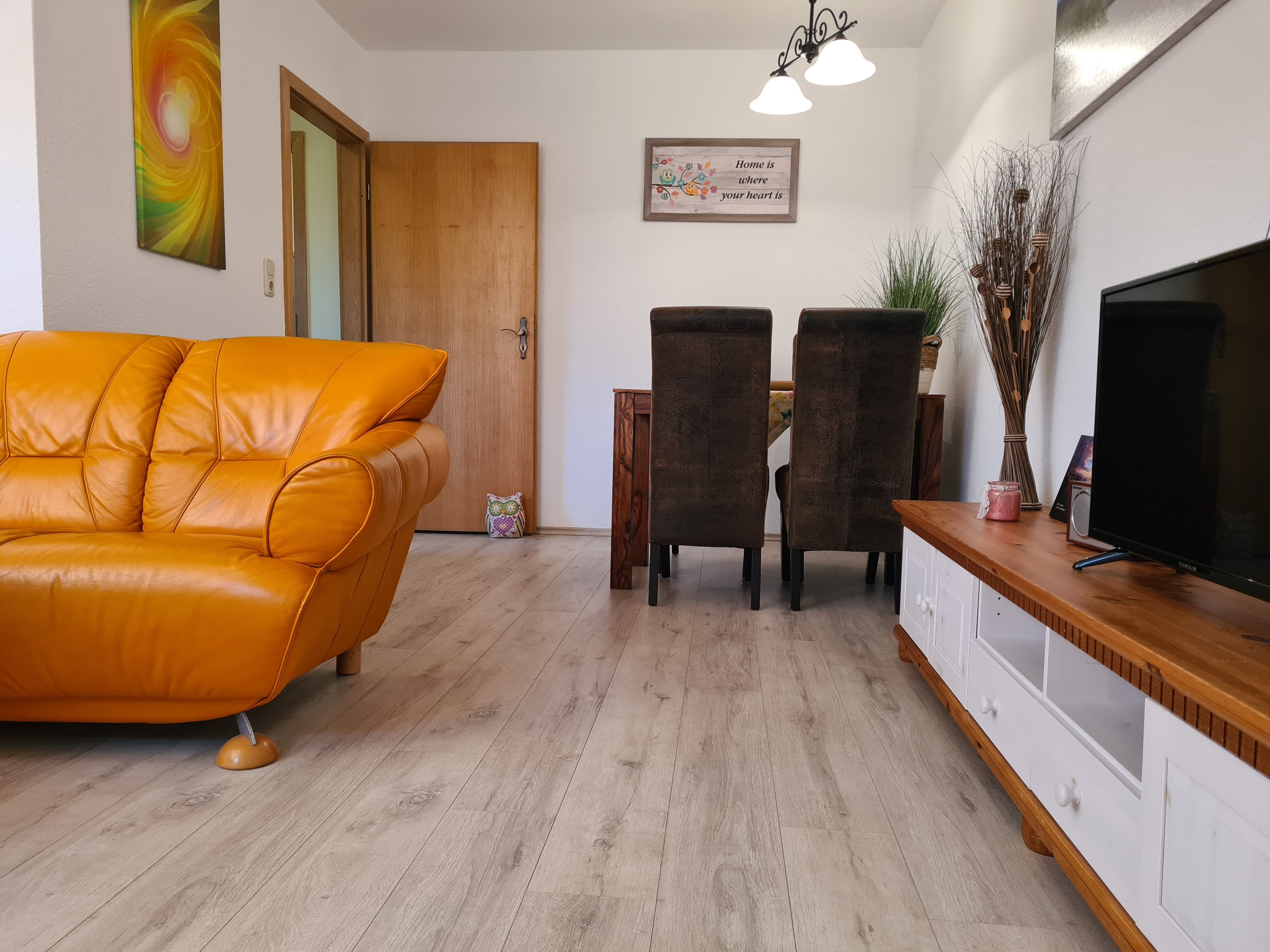 - Wohnraum mit Radio, Flachbild-TV, Eßtisch