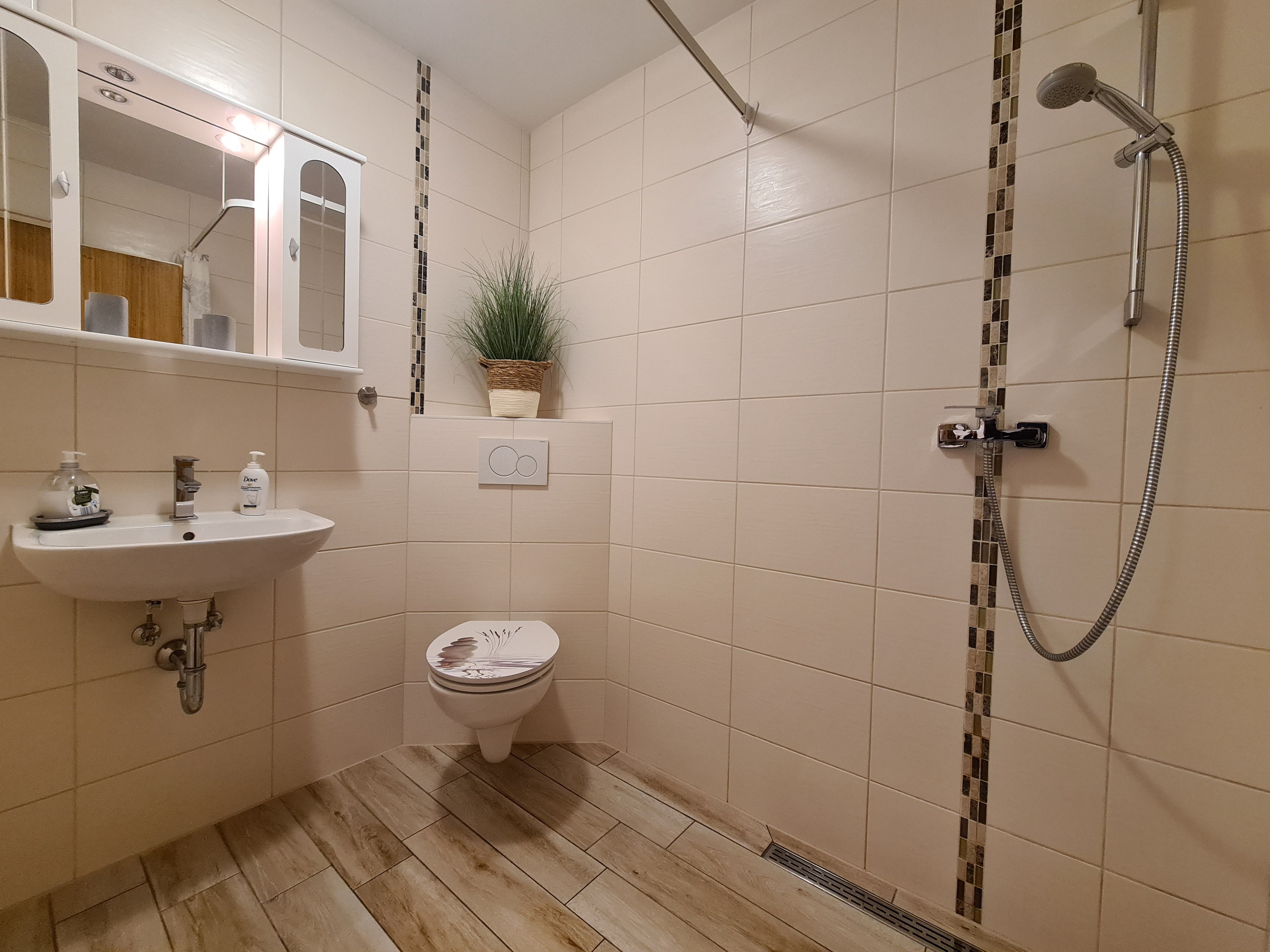 - 1 Schlafraum (Doppelbett (1,80x2m) mit Komforthöhe mit beidseitig seitlichen Zugang (nicht rollstuhlgerecht)