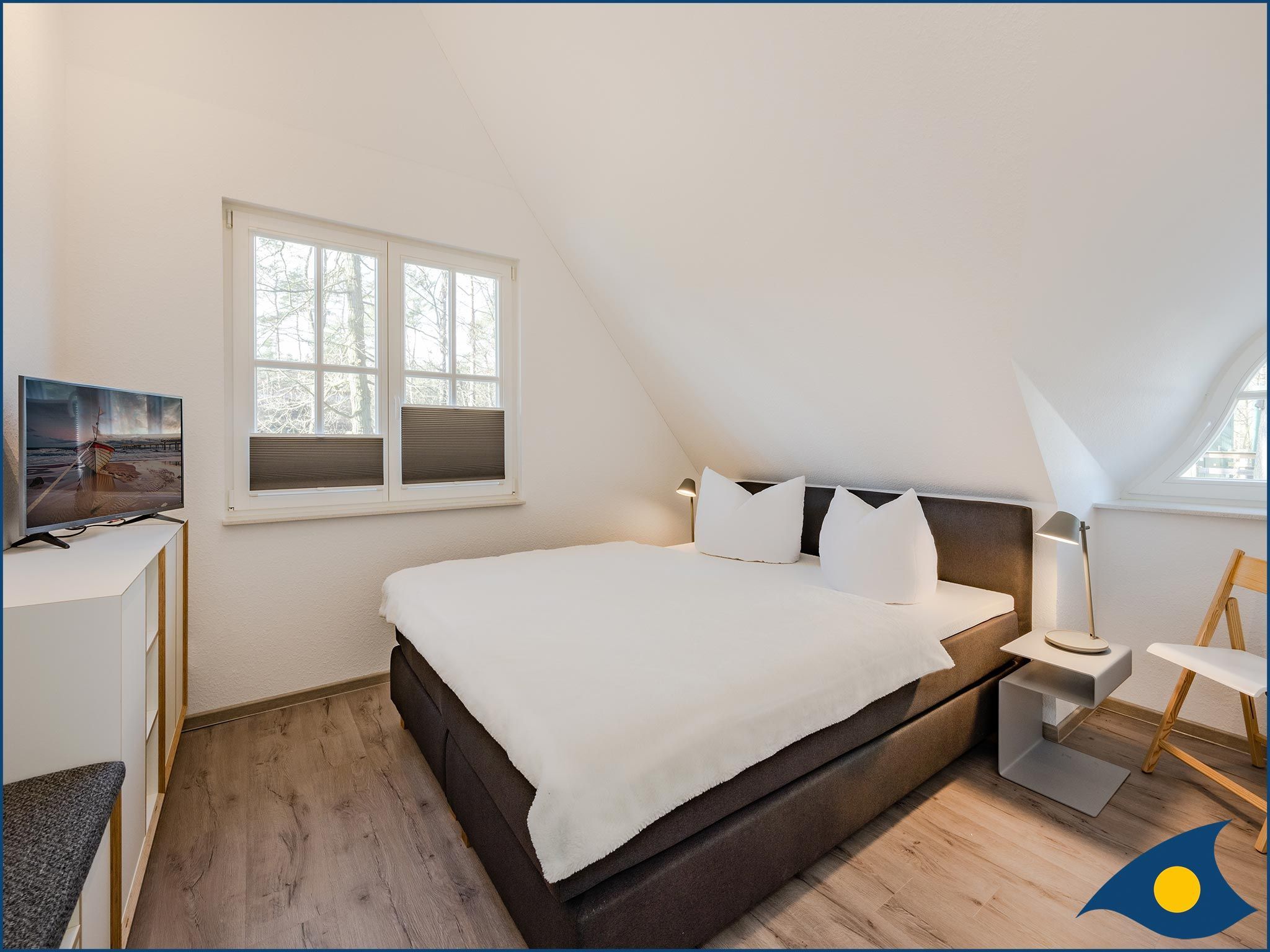 Im Obergeschoss befinden sich vier Schlafzimmer mit ausreichend Strauraum für Ihre privaten Sachen. Dabei sind zwei Schlafzimmer mit je einem Doppelbett, ein Schlafzimmer mit einer hochwertigen Schlafcouch (1,60x2,00m) und ein Schlafzimmer mit zwei Einzelbetten und einem Schreibtisch ausgestattet. Im großzügigen Badezimmer finden Sie eine Badewanne, eine ebenerdige Dusch und ein Bidet.