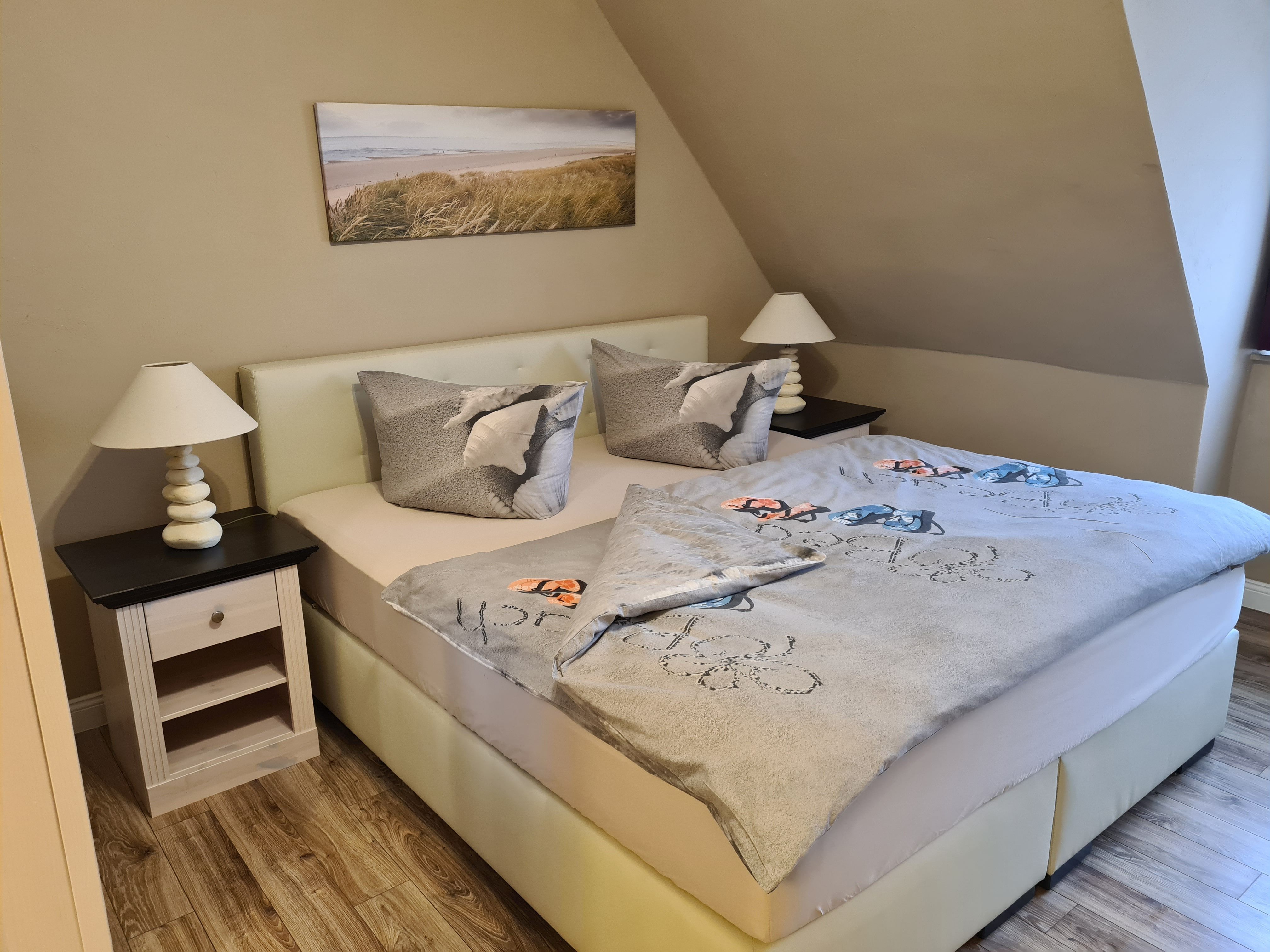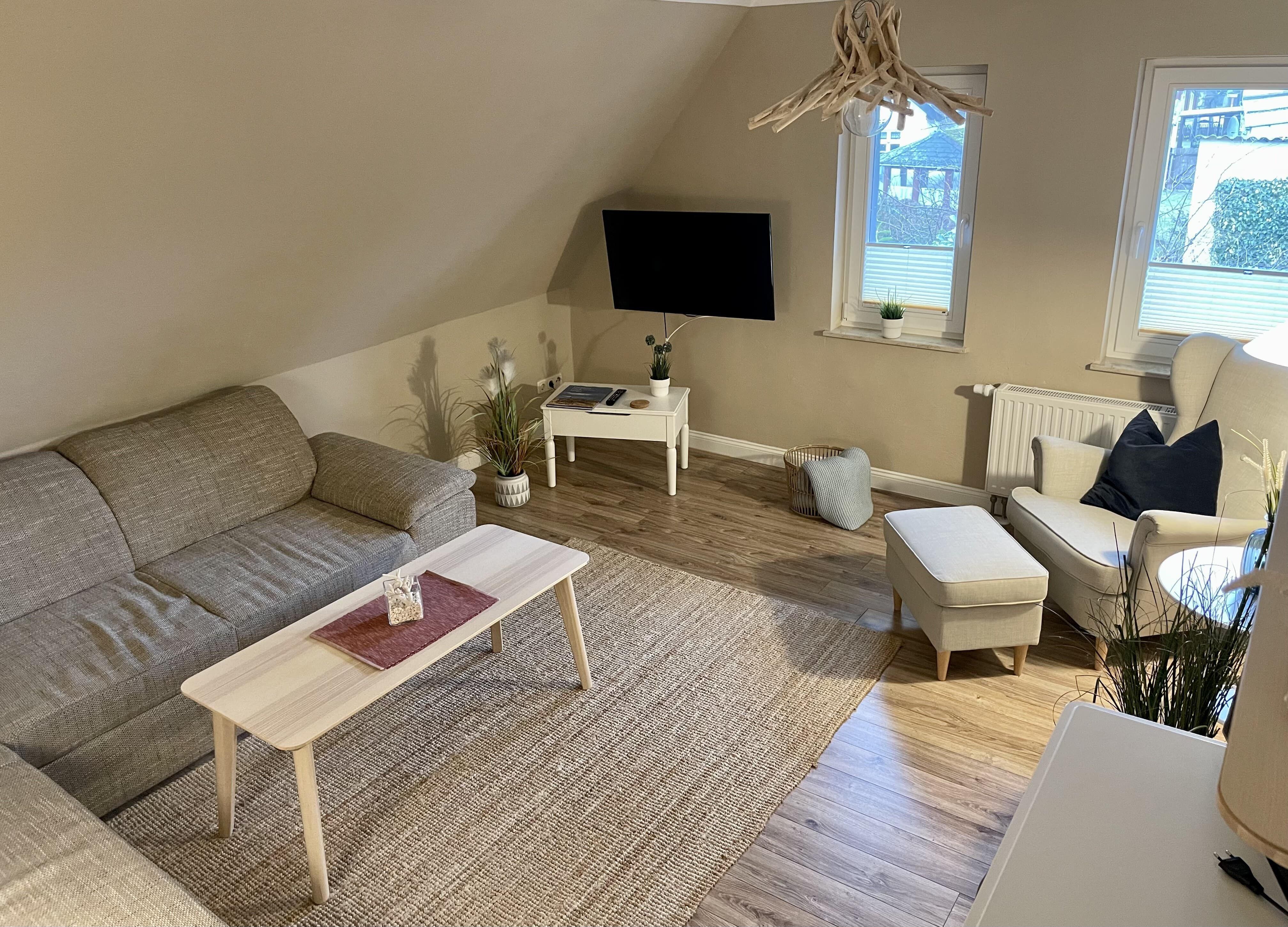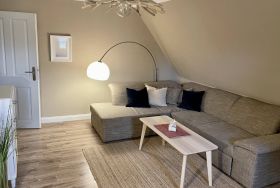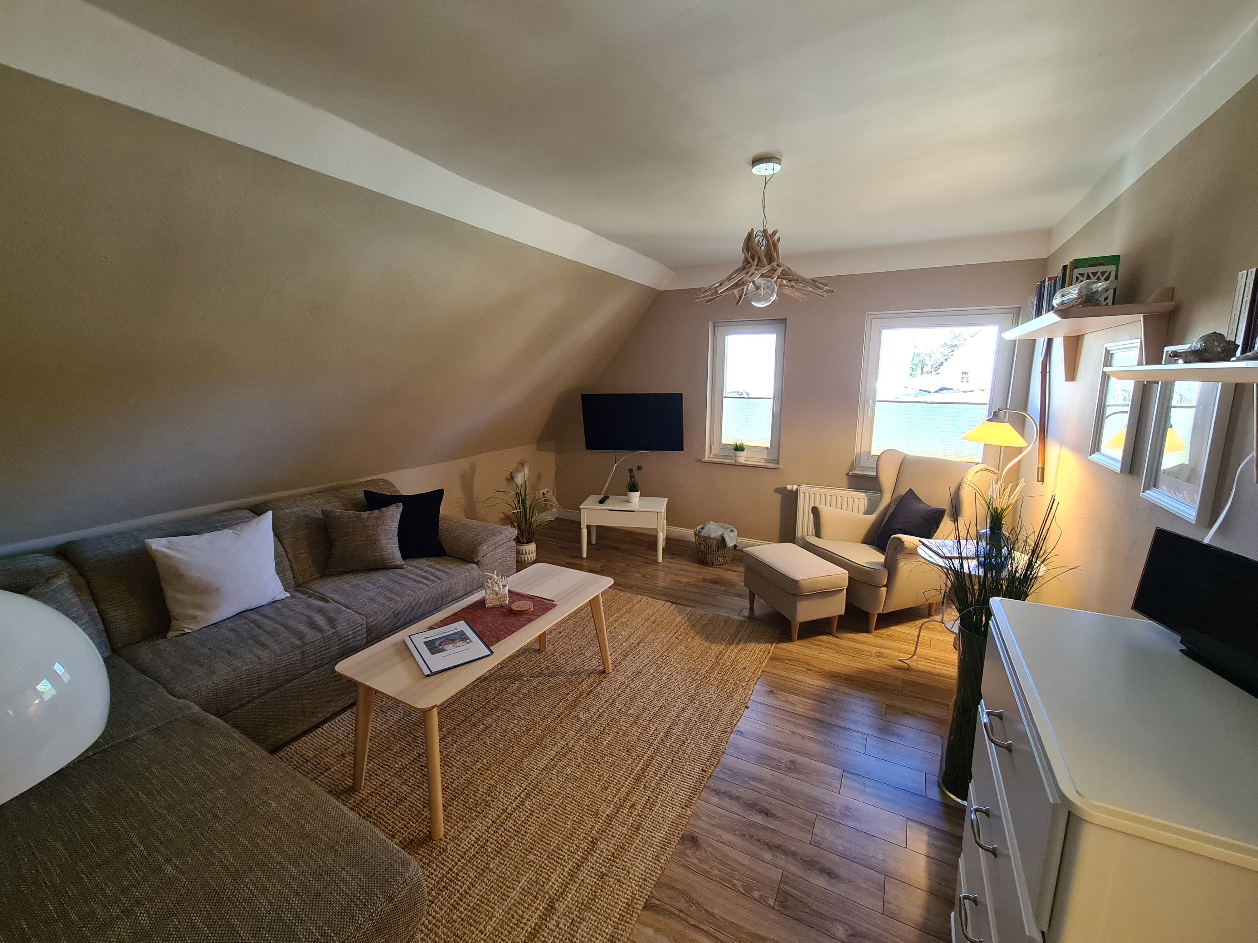 Die Wohnung wurde mit viel Liebe zum Detail von den Vermietern eingerichtet.Das Wohnzimmer verfügt über eine gemütliche Couch, SAT- TV., einer HIFI- Anlage und CD- Player. Im Schlafzimmer befindet sich ein Doppelbett 1,80 x 2,00 cm (mit getrennten Matratzen) und viel Stauraum. Auch bei der Küchenausstattung wurde auf jedes Detail geachtet, damit die Gäste sich rundum Wohlfühlen können.