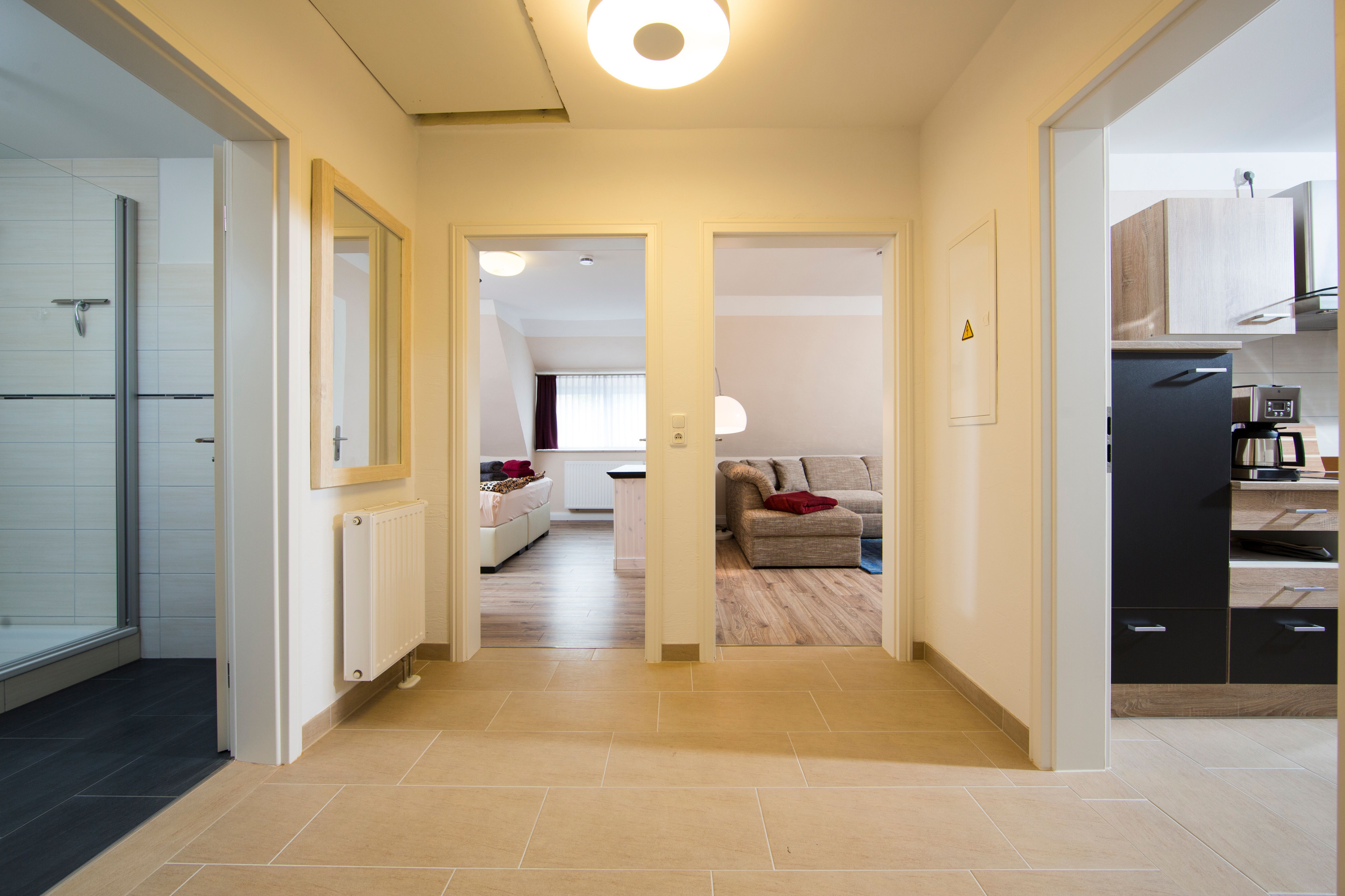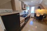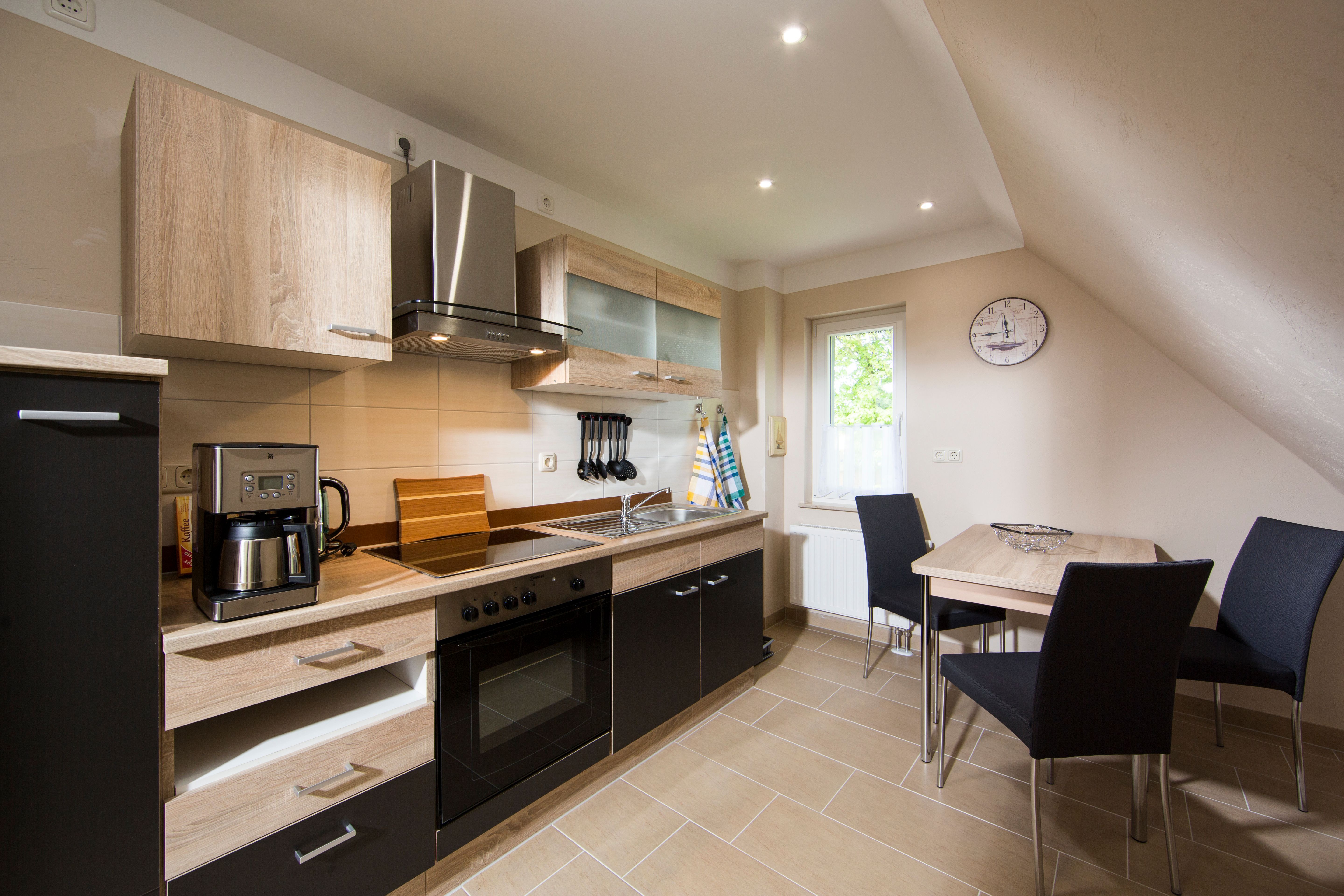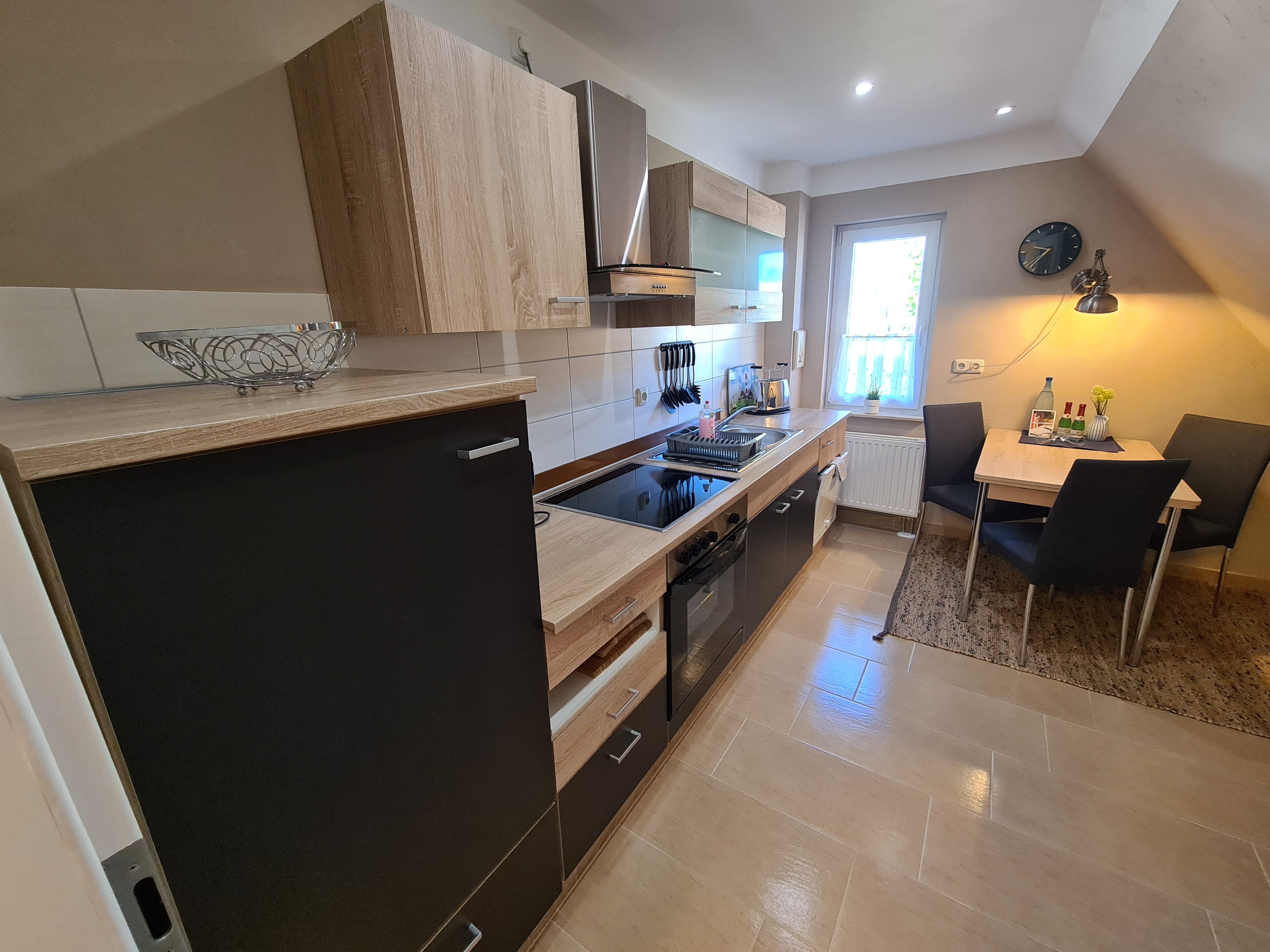 Zur Ausstattung gehören alle notwendigen Küchenutensilien und laden mit dem Essplatz zum gemeinsamen kochen ein.Das Badezimmer wurde mit einer ebenerdigen Dusche ausgestattet.Die Wohnung ist eine Nichtraucherwohnung. Für unsere Gäste steht ein kostenloses WLAN bereit. Die Ferienwohnung wird inklusive Bettwäsche und Handtücher übergeben. Ein Fahrradschuppen steht für alle Wohnungen zur Verfügung.