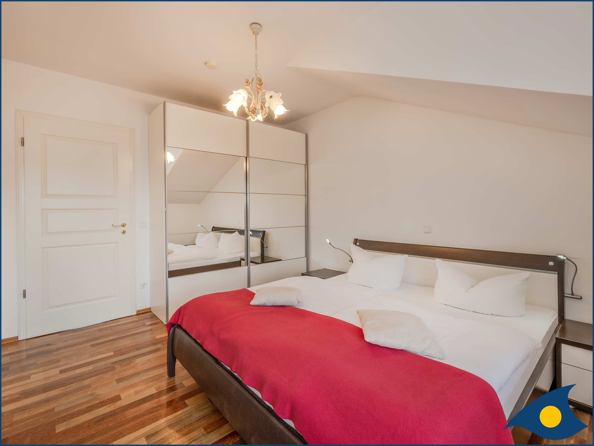 Erholsame Nächte können Sie im separaten Schlafzimmer mit Doppelbett und Südbalkon genießen.