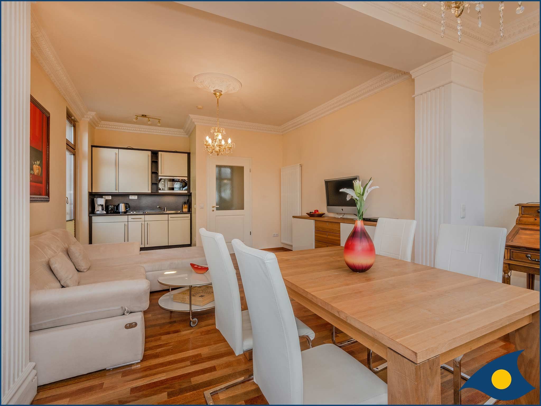 Direkt an der Strandpromenade, im Herzen von Ahlbeck, befindet sich diese wunderschöne Villa mit 9 verschiedenen Appartements. Die modern ausgestatteten 1- und 2-Raum Wohnungen bieten Platz für bis zu 4 Personen. Die oberen Wohnungen bieten Ihnen, dank der bodentiefen Fenster - einen wundervollen Blick auf die Ostsee.