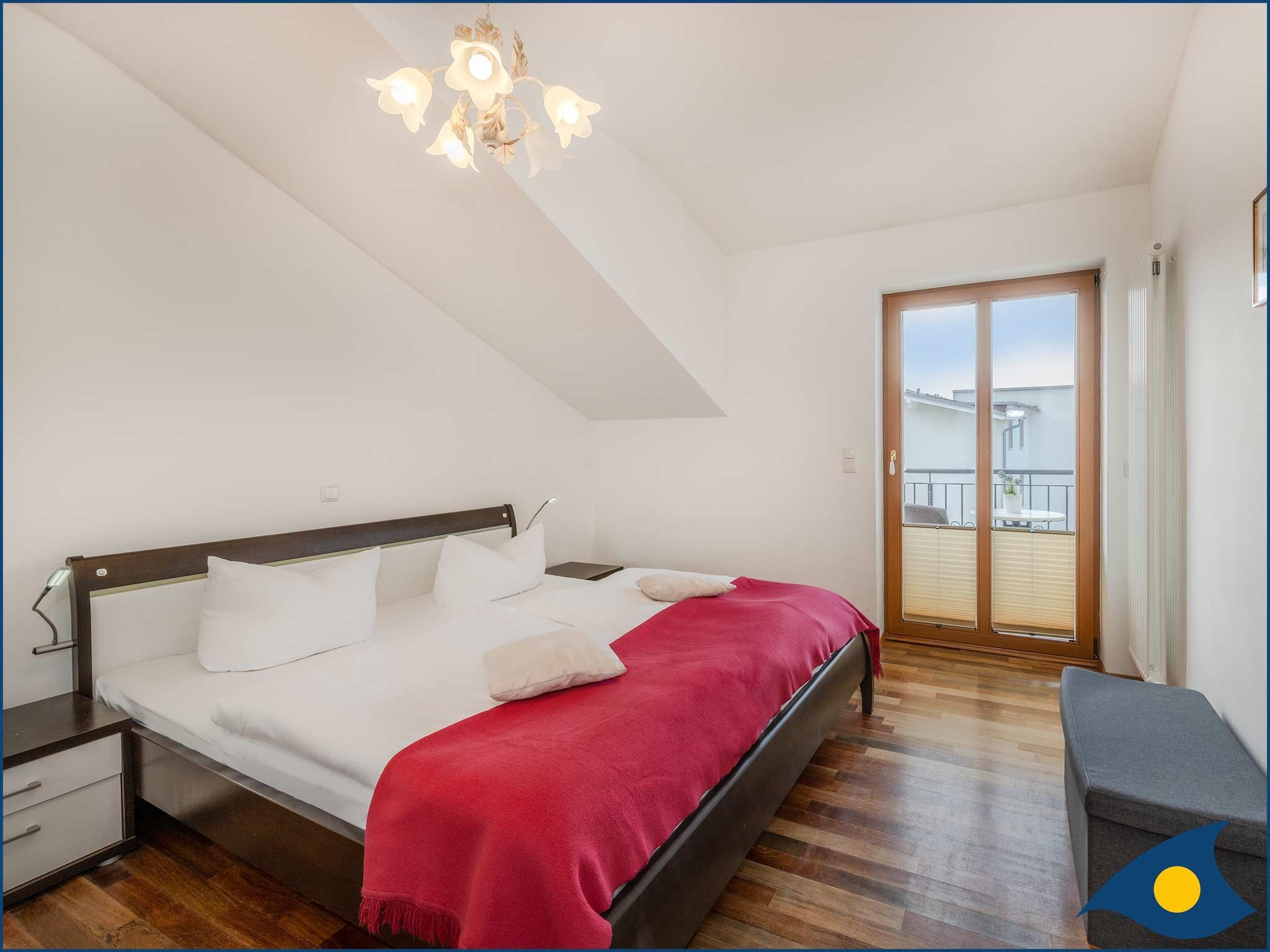 • separates Schlafzimmer mit Doppelbett und Südbalkon