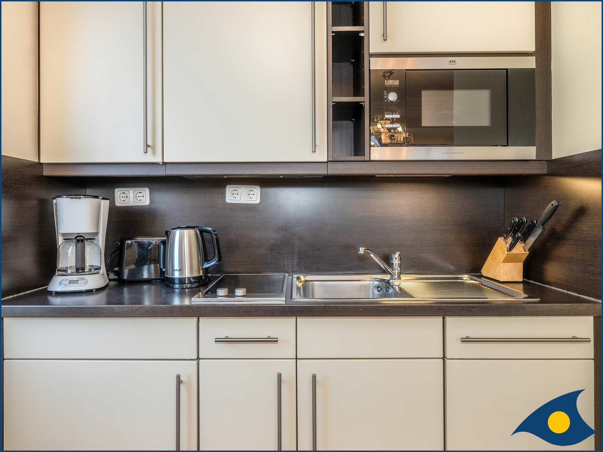 • offene Küche mit Spülmaschine und Mikrowelle
