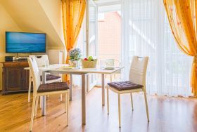 Genießen Sie die frische Ostseeluft auf dem privaten Balkon mit Blick ins Grüne. Hier können Sie den Tag mit einem Frühstück im Freien beginnen oder abends bei einem Glas Wein ausklingen lassen.