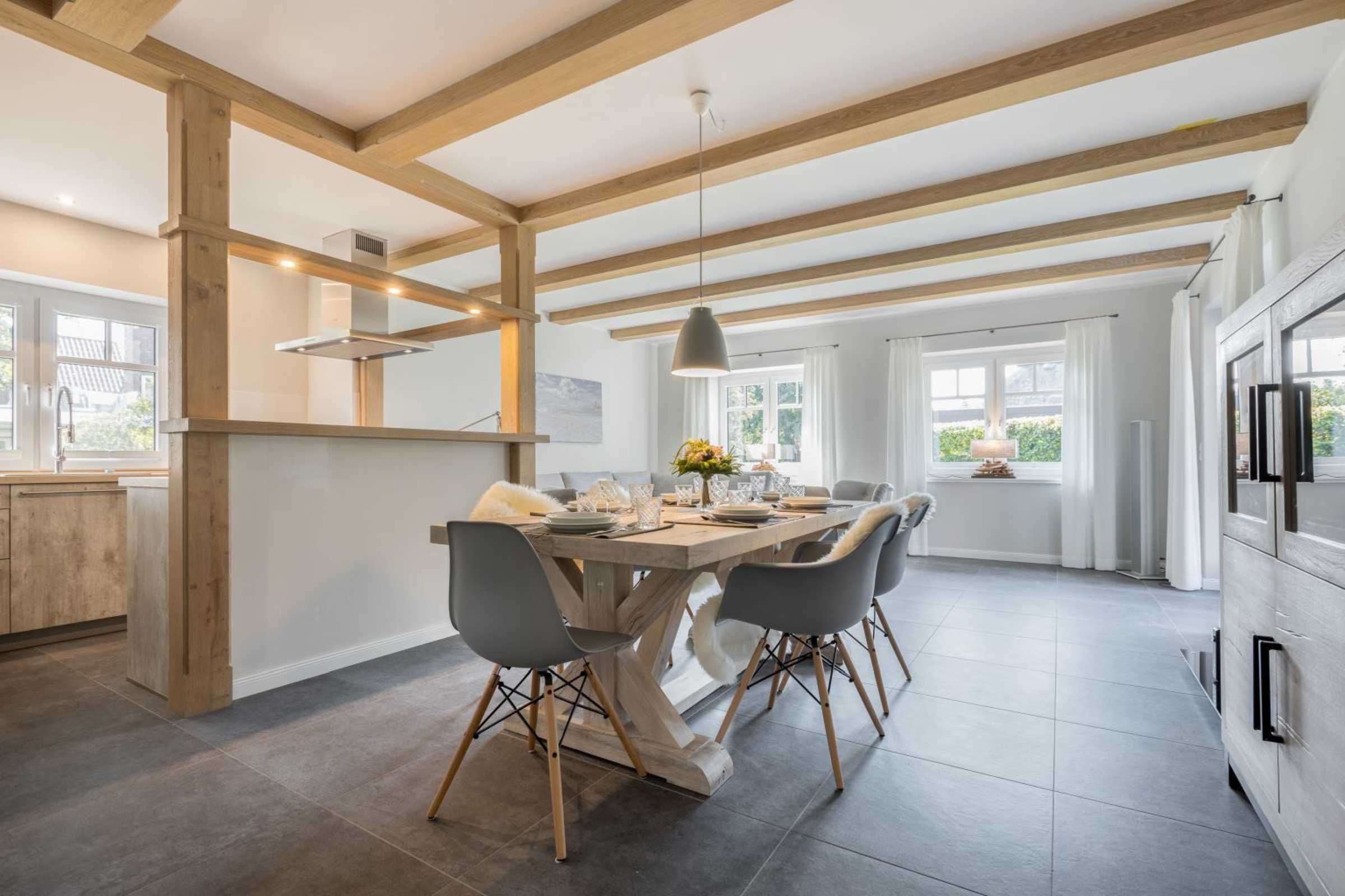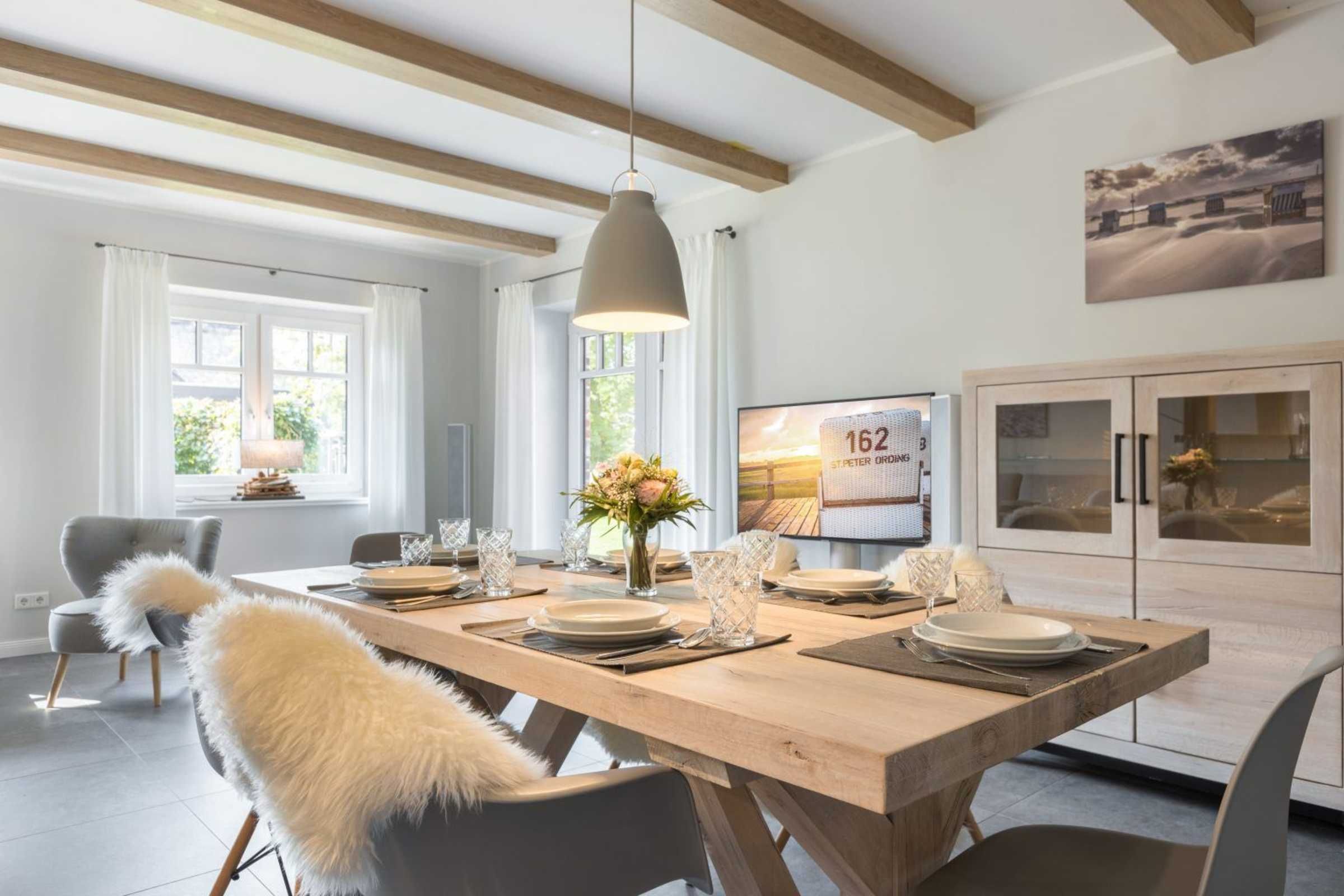 Exklusives 4-Zimmer-Feriendomizil Vörn Binnendiek unter Reet im Haus Öwerweg 4 mit ca. 105 qm auf 1 Ebene (EG) für bis zu 5 Personen. In absolut ruhiger, aber zentrumsnaher Lage im Ortsteil Bad in St. Peter-Ording. Den Gästen steht der gesamte schöne Garten zur Verfügung. Besondere Behaglichkeit spendet der schöne Kaminofen im Wohnzimmer.