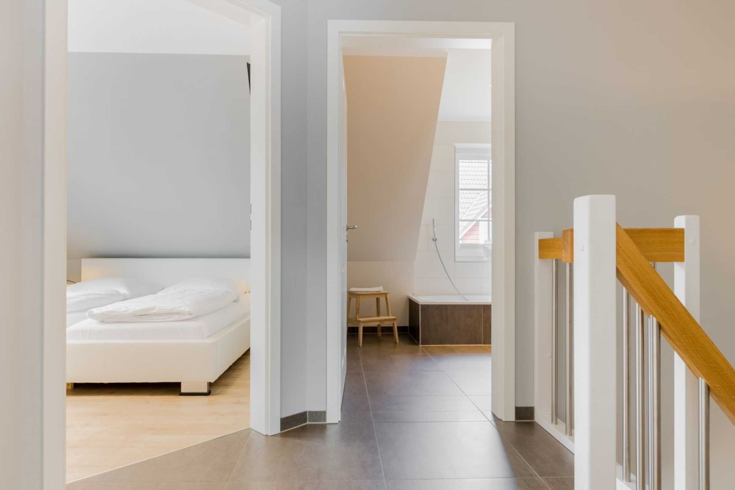 3 Schlafzimmer mit Doppelbetten (hochwertige Bugatti-Matratzen), Kleiderschränken und abdunkelbaren Fenstern mit Fliegengittern. 2 Bäder: Duschbad mit Regen-Dusche, Wannenbad mit Fußbodenheizung.