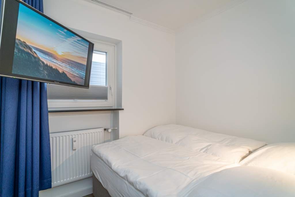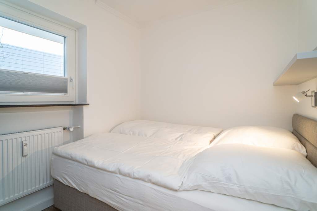 Das Schlafzimmer ist mit einem Boxspringbett (Liegefläche: 1,40 m x 2,00 m, durchgehende Matratze, einseitiger Einstieg) ausgestattet.