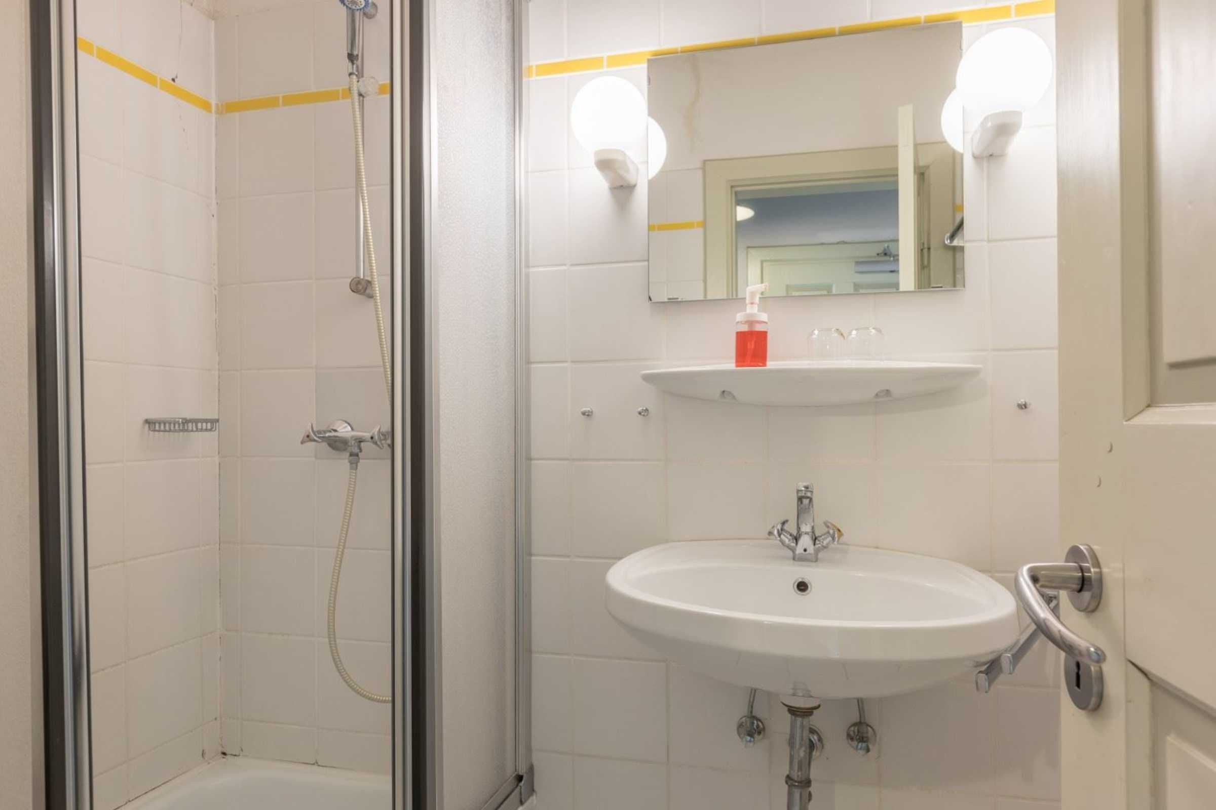 Badezimmer (Duschbad) mit Dusche, WC und Föhn.